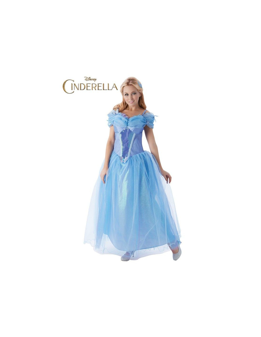 Disfraz Cenicienta mujer para convertirte en toda una princesita. Producto con licencia oficial Disney. Incluye brillante vestido en tonos azules adornado con mariposas y accesorio para la cabeza.