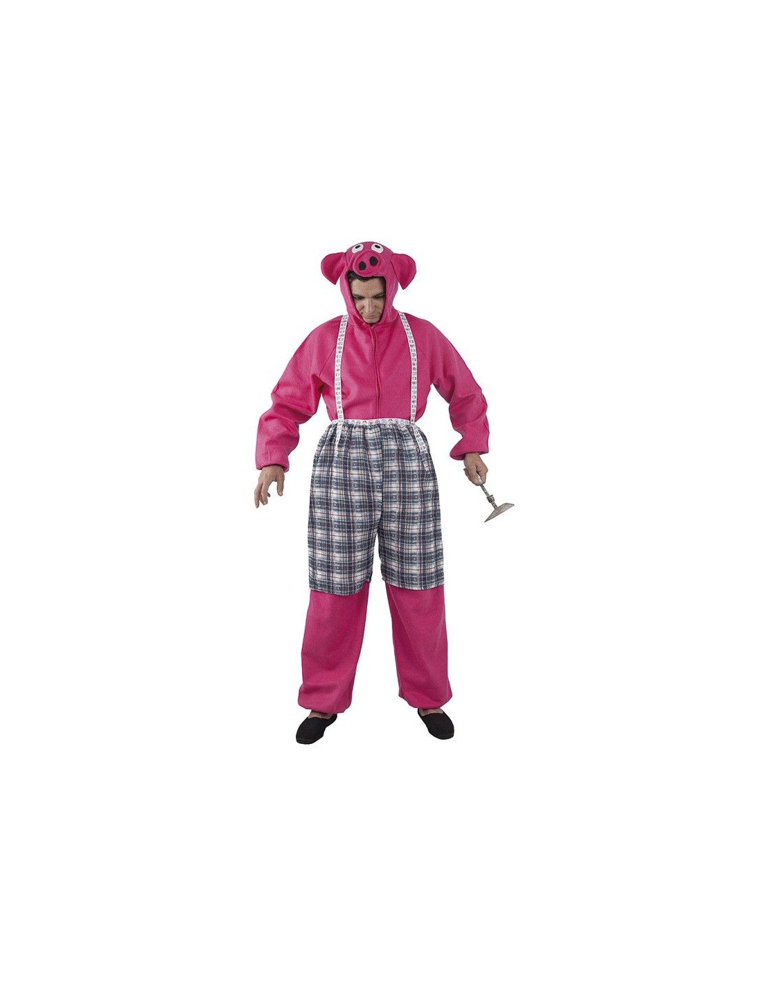Disfraz cerdito valiente con el que serás el animal más aventurero de la granja. Ideal para comparsas y Carnaval. Incluye mono con cabeza y peto.
