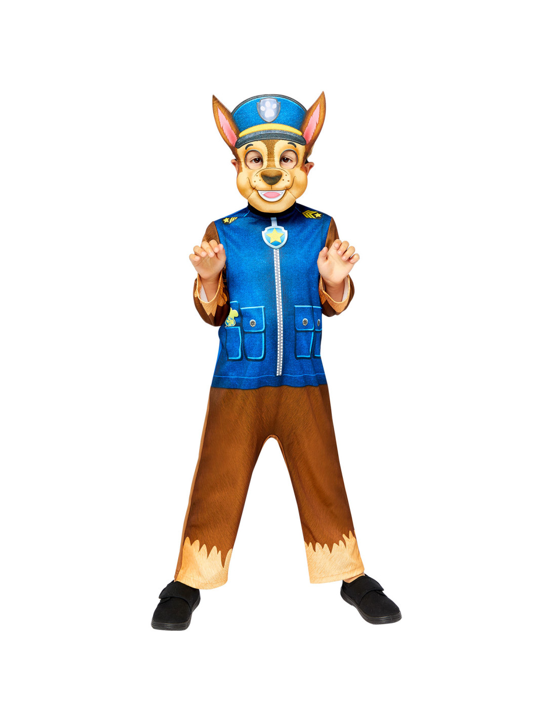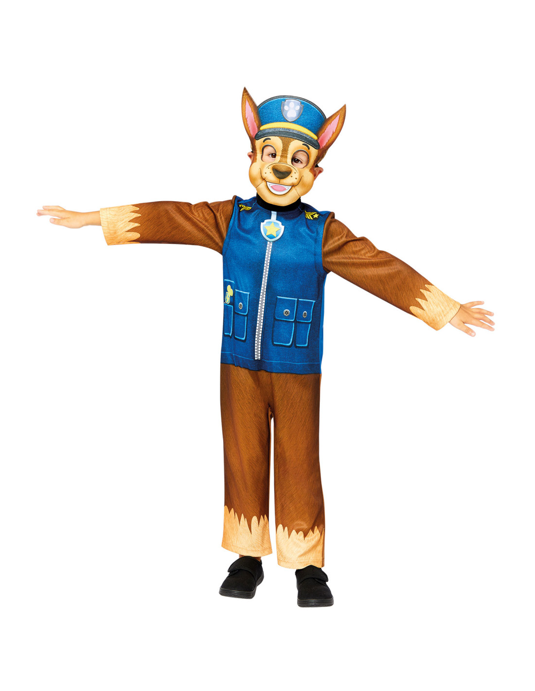 Disfraz Chase Patrulla Canina infantil que incluye mono y careta.