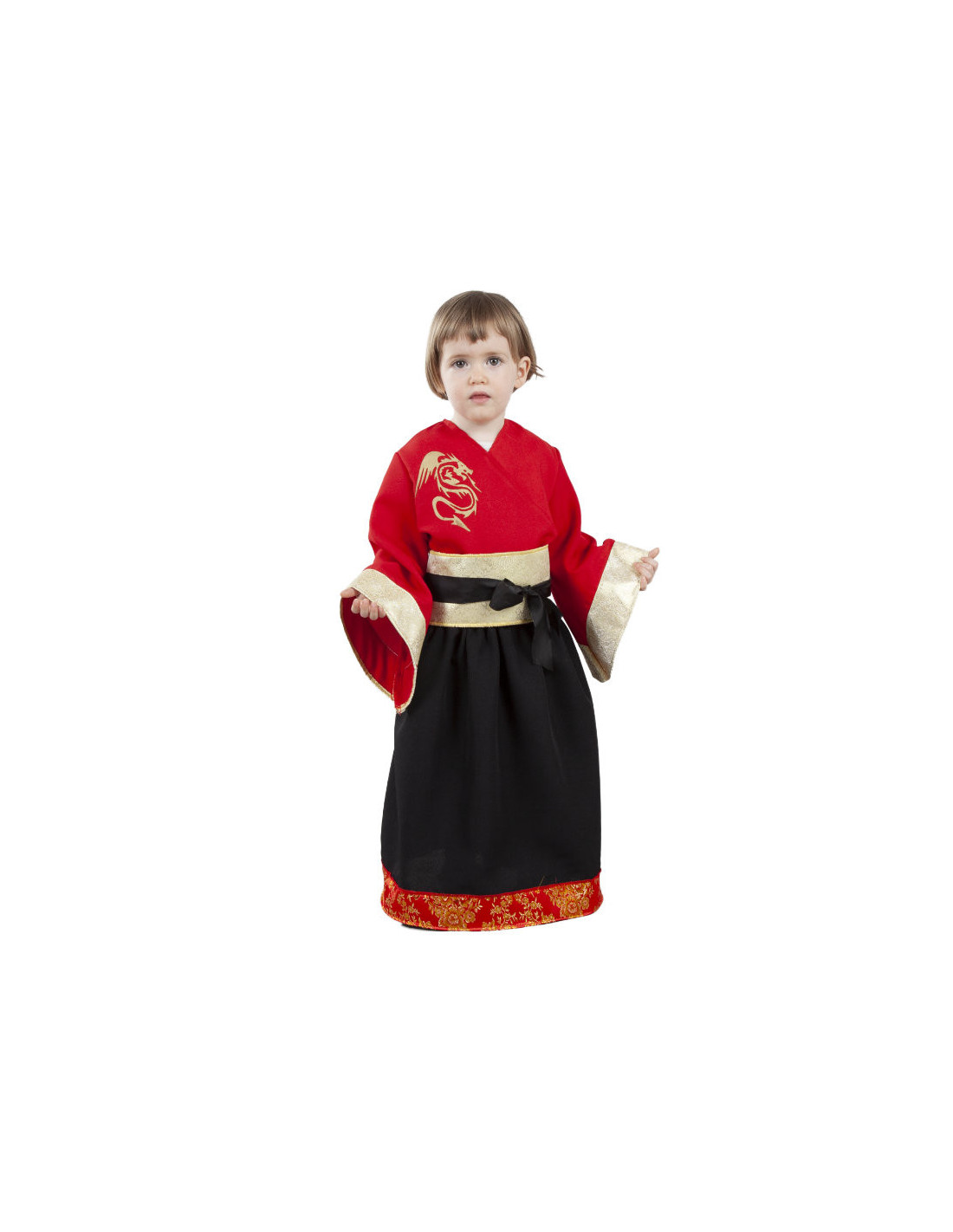 Disfraz china para bebé que incluye camiseta, cinturón y falda.