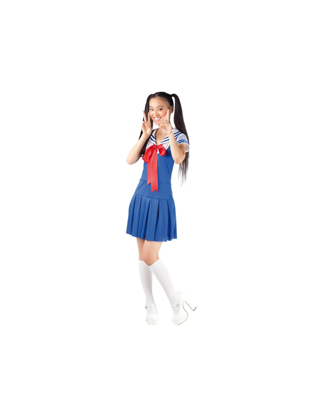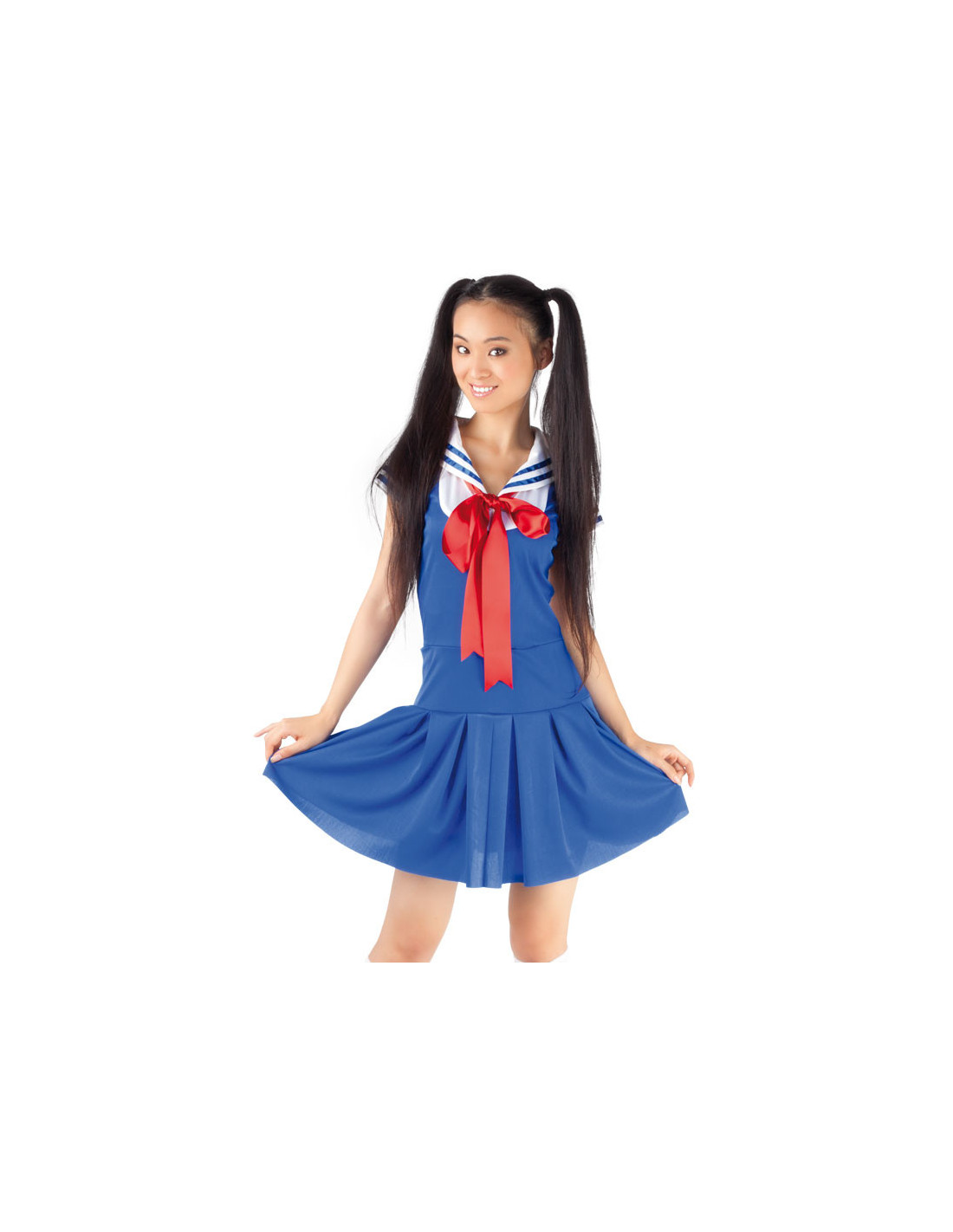 Revive tus mangas favoritos con este disfraz de colegiala japonesa al que no le falta detalle con su cuello marinero y los lazos, muy característico del país oriental.
