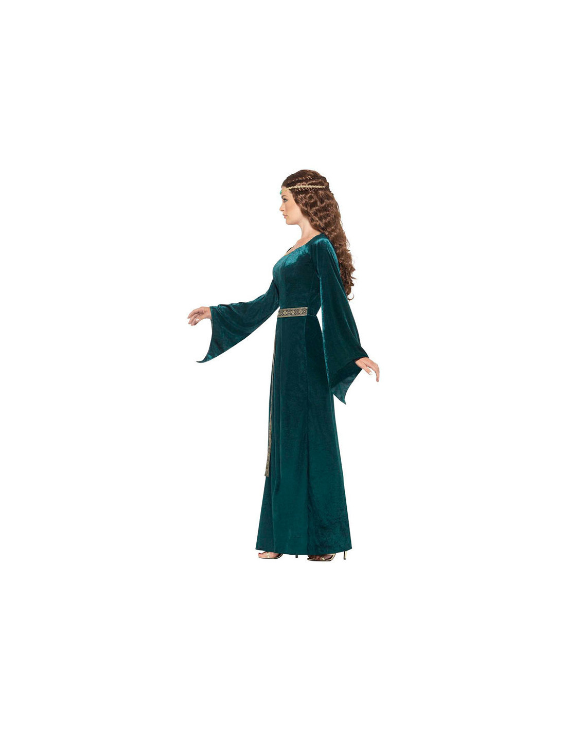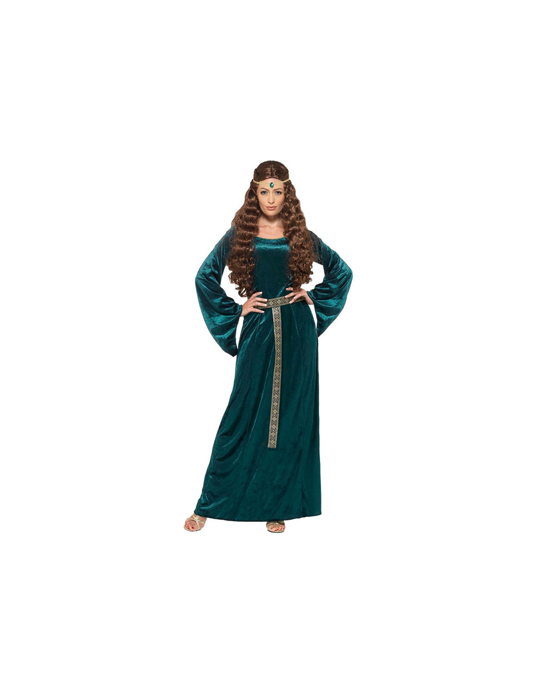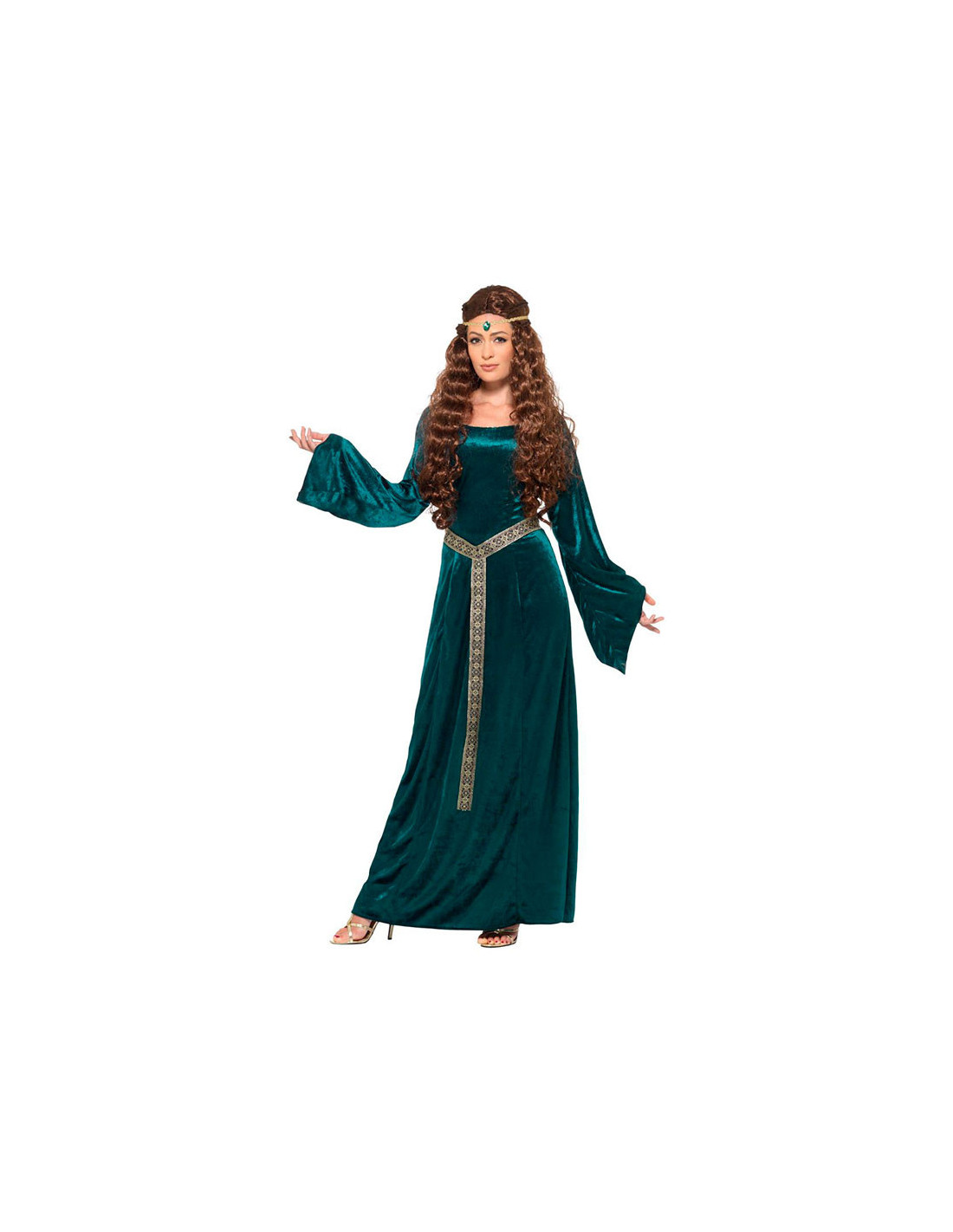 El disfraz Dama Medieval en talla grande contiene vestido largo y cinta para la cabeza con una joya.