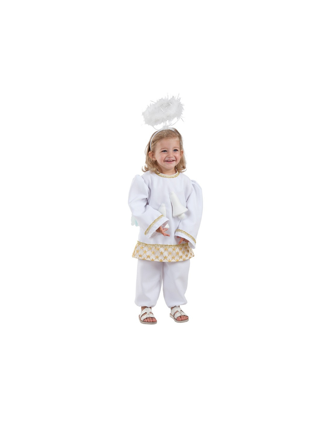 Disfraz de ángel para bebé que incluye casaca con alas, campanas de goma eva y pantalón. No incluye diadema.