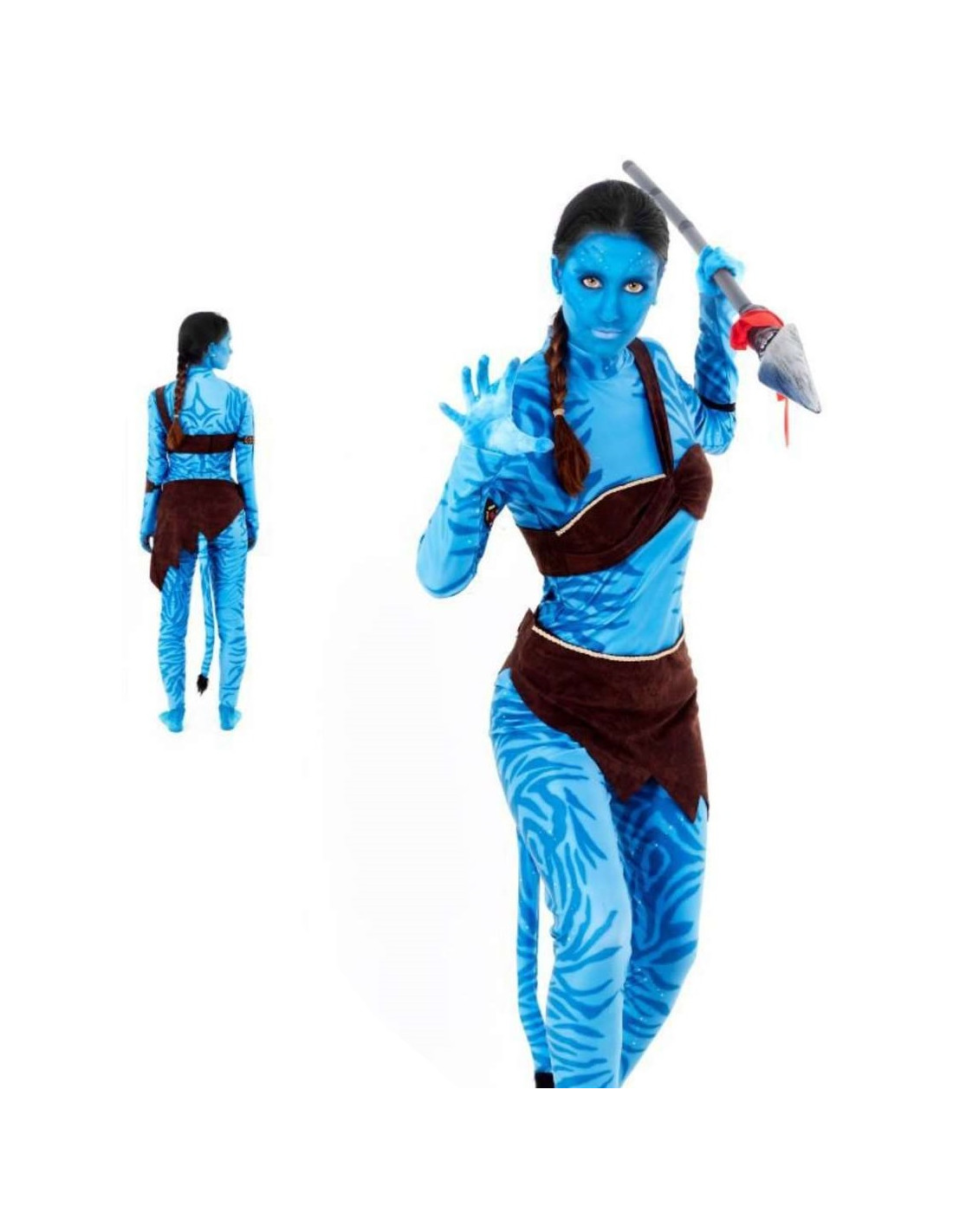 Disfraz de Avatar mujer que incluye camiseta, pantalón, top, cinturón, cola y brazalete.