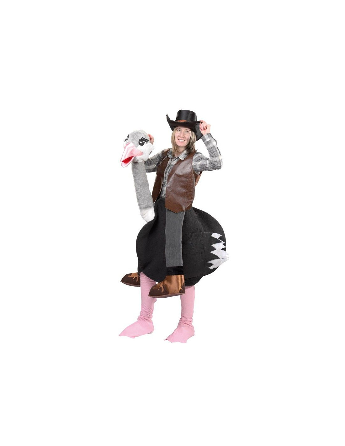 Disfraz de avestruz para cabalgarla como un auténtico cowboy.