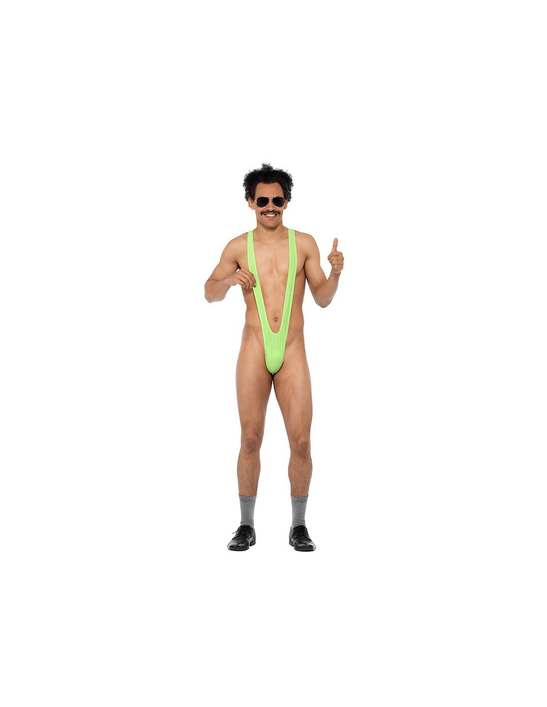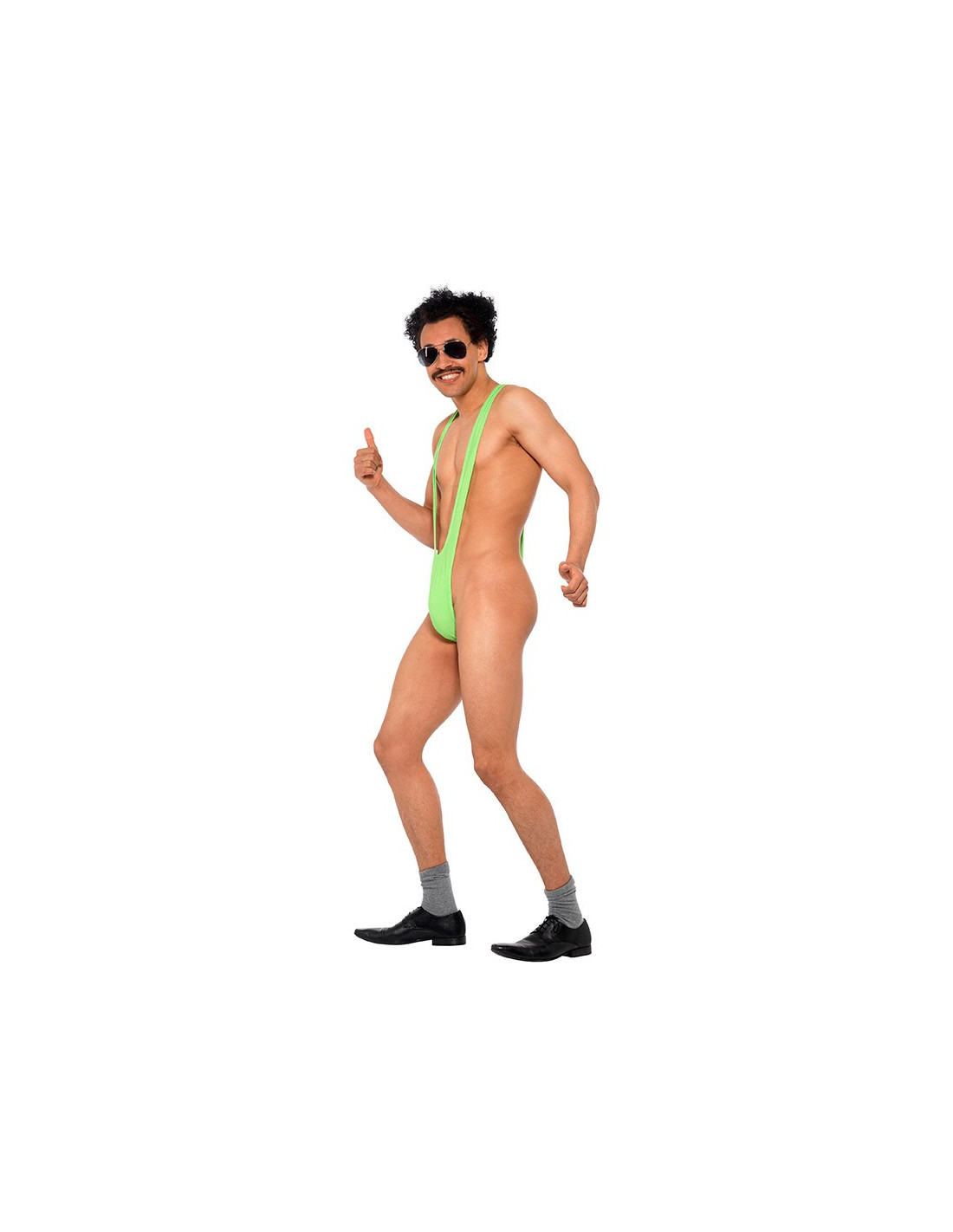 Atrevido disfraz Mankini de Borat solo apto para los más valientes. Incluye bañador de color verde lima. Talla única.