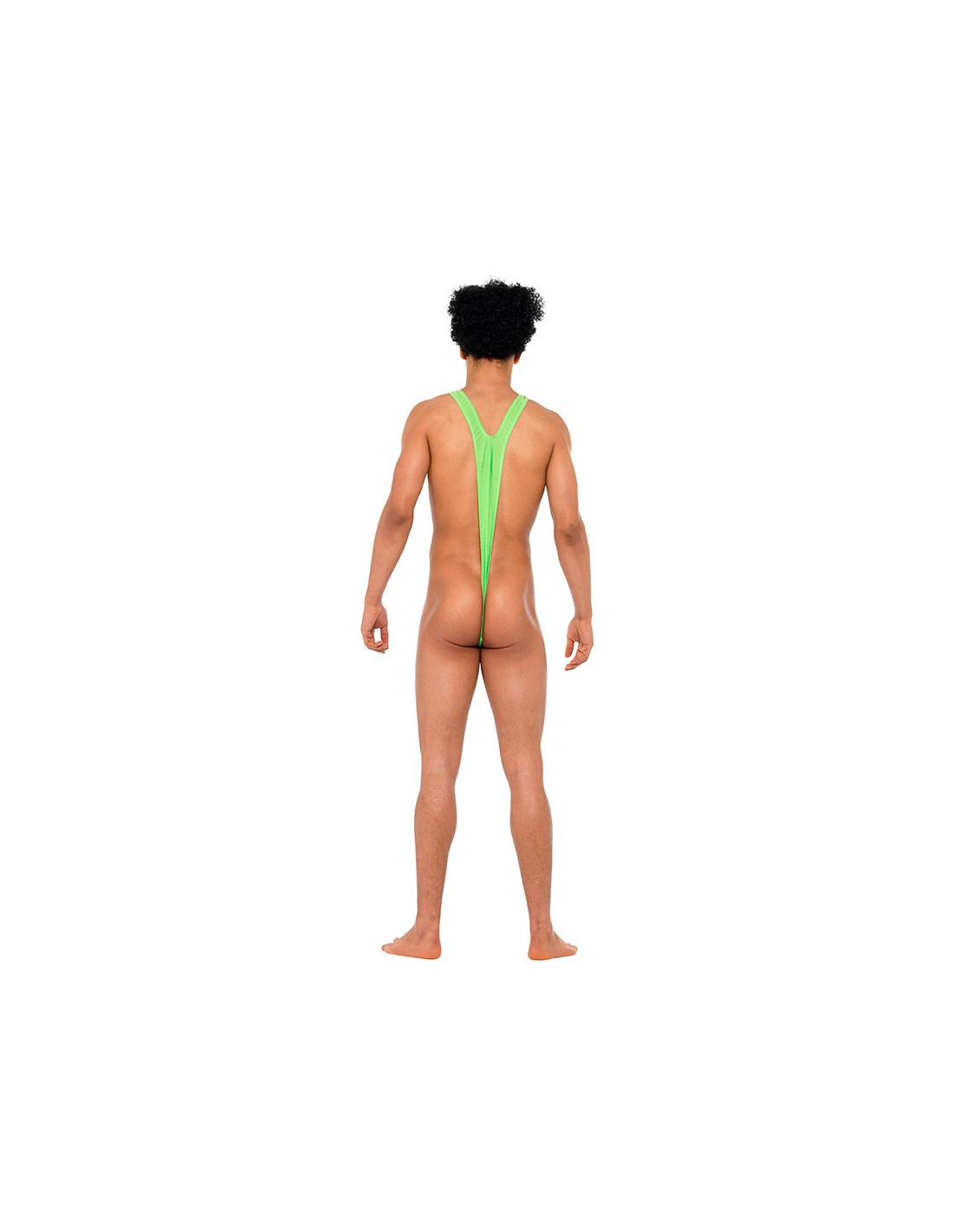 Disfraz de Borat Mankini hombre que incluye mankini verde fosforito de tejido elastico.