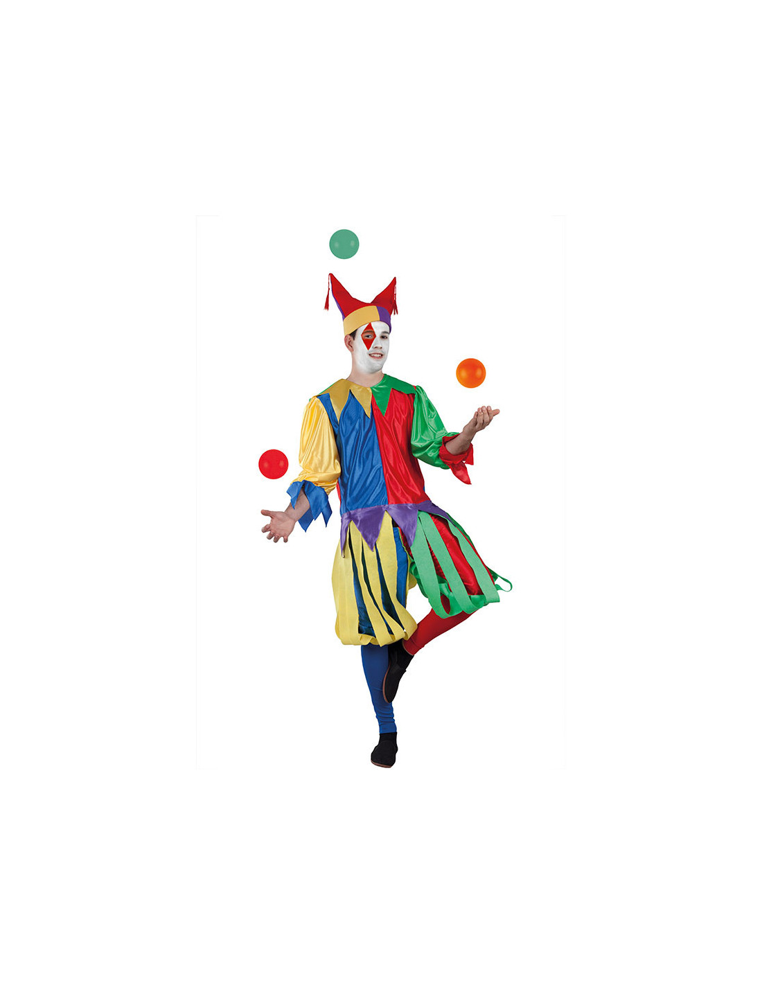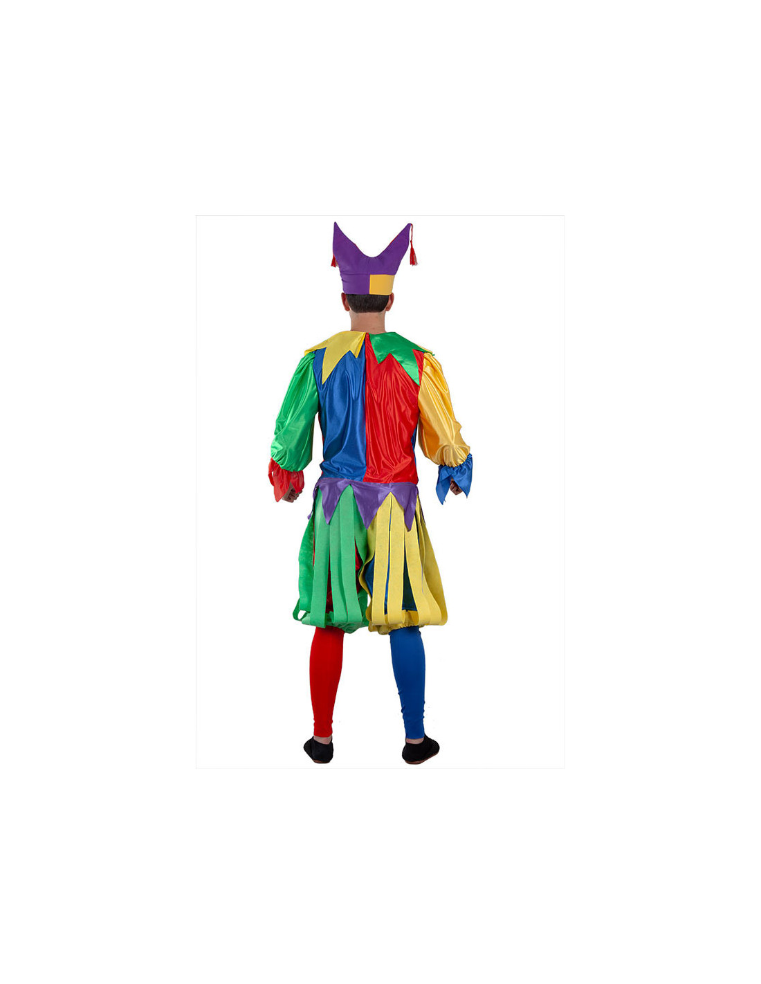 Disfraz de bufón Medieval adulto que incluye gorro, camiseta, pantalón y calcetines.