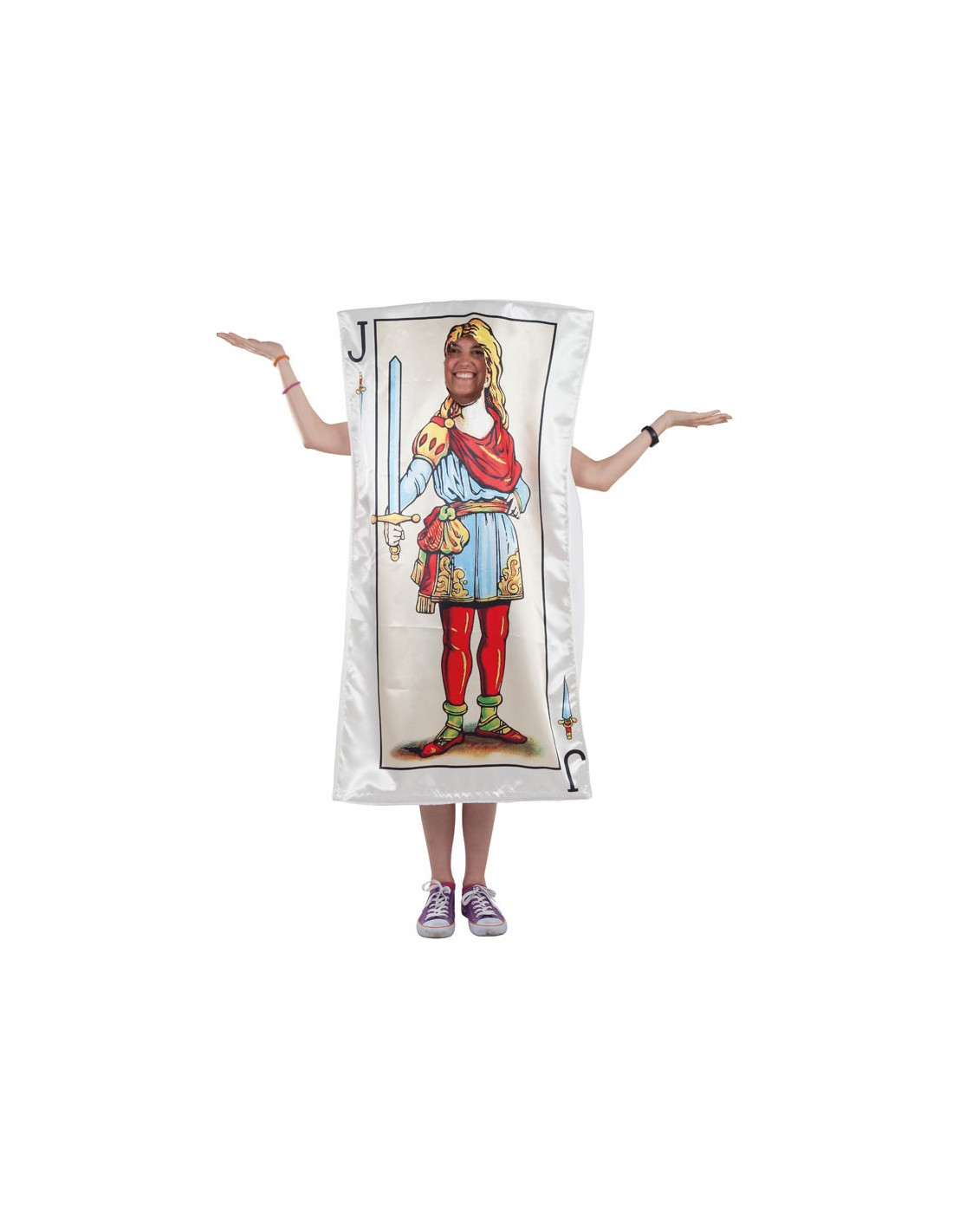 Disfruta del guiñote como nunca y conviértete en una de las cartas más poderosas de la baraja española con este genial disfraz de carta Sota de espadas. Fabricado en tela foamizada y estampada mediante sublimación, es una carta totalmente real. Incluye unas gomas para sujetas en la parte de los hombros.
