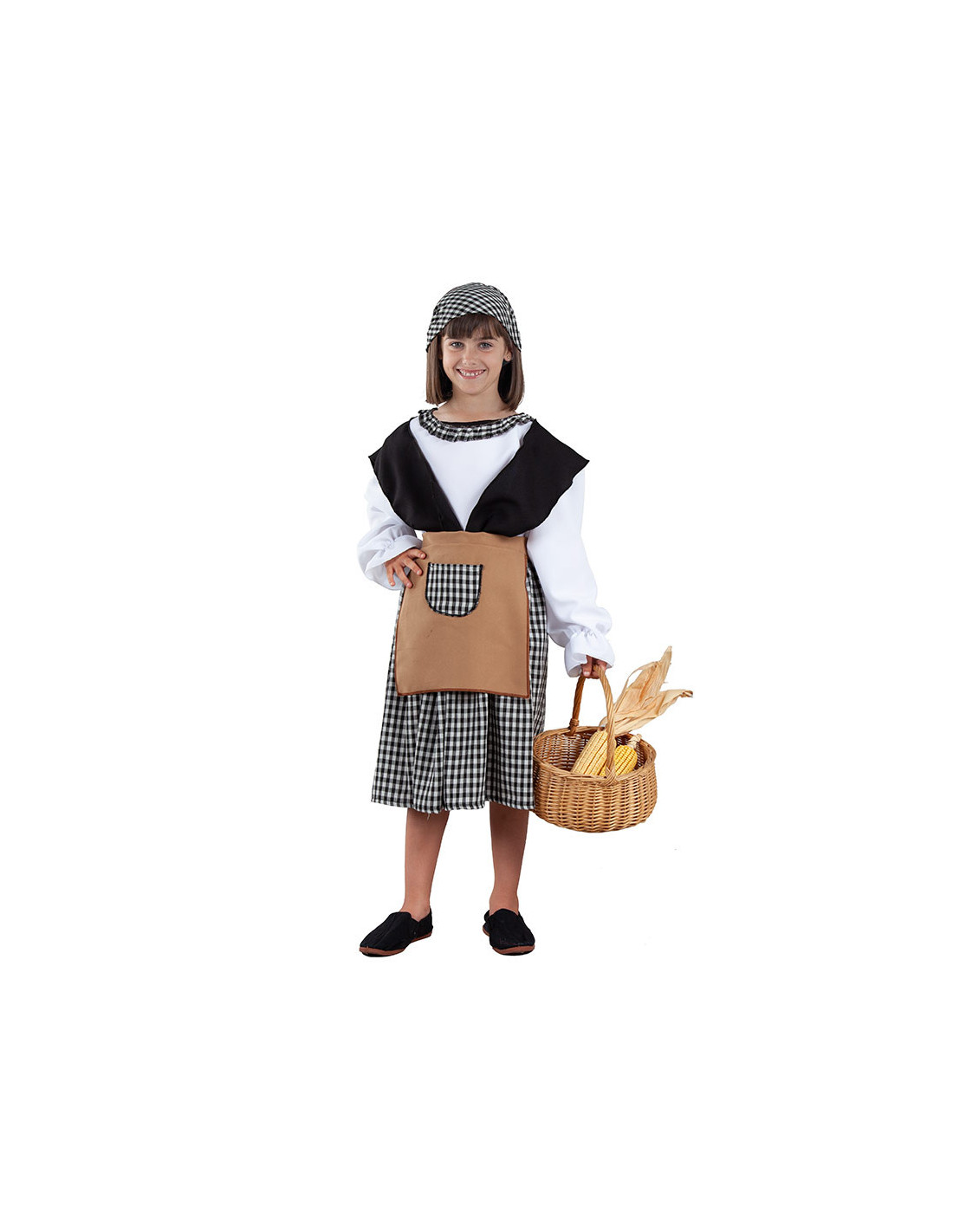Precioso disfraz de castañera para niña en representaciones de Navidad o Belén viviente. La pequeña podrá ponerse en la piel de una antigua castañera o una pastorcilla. Además, con un poco de maquillaje también puede servita como disfraz de anciana.