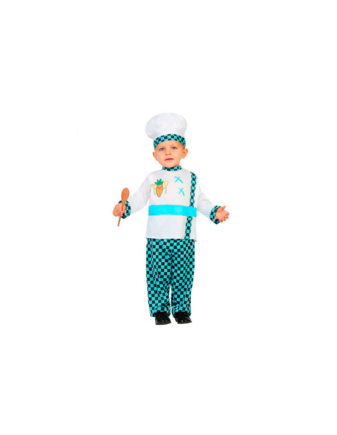 Disfraz de cocinero azul para bebé que incluye camiseta, pantalón y gorro. Composición: 100% poliéster.