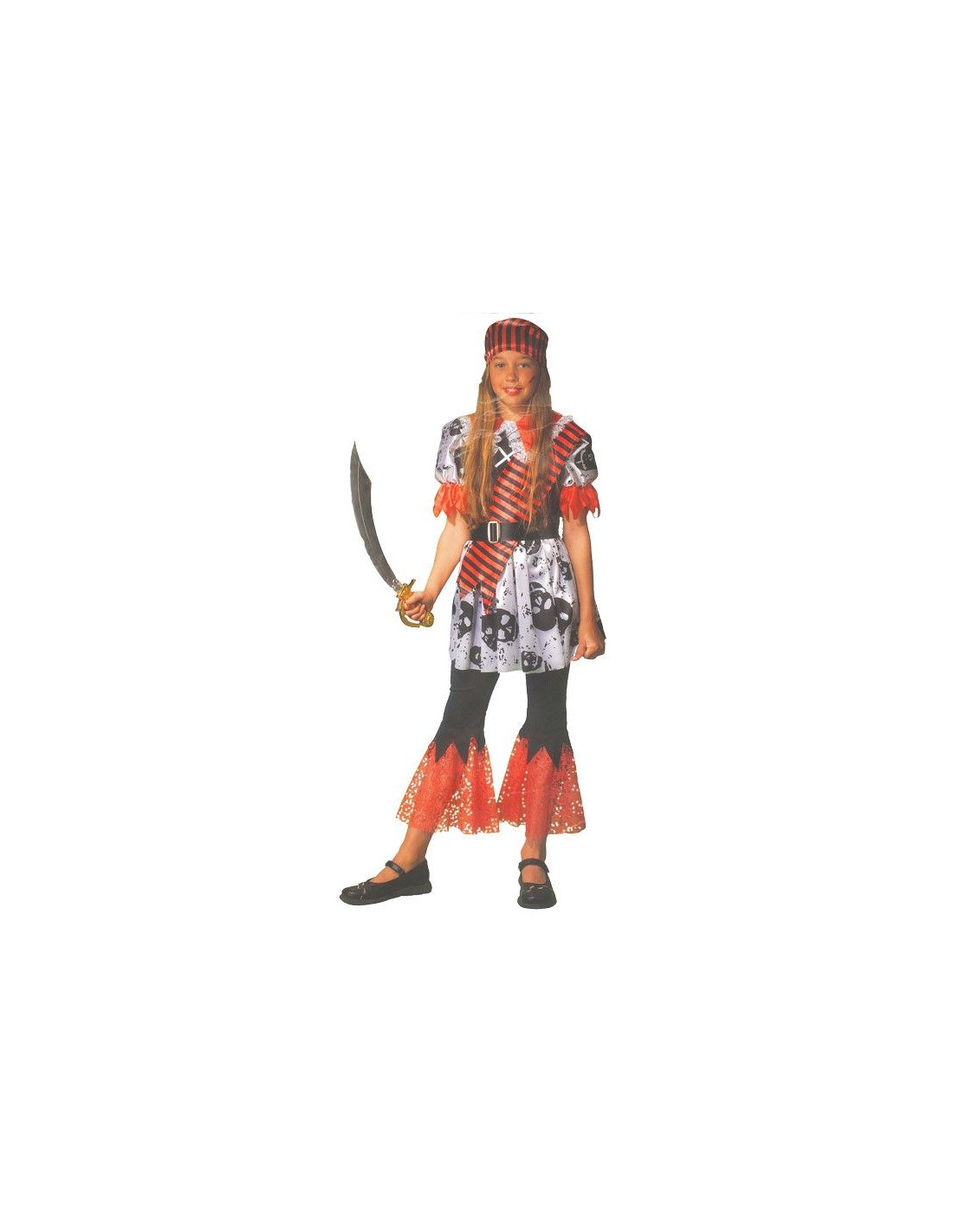 Disfraz de pirata para las niñas más valientes. Incluye chaleco, pañuelo, vestido y pantalón.