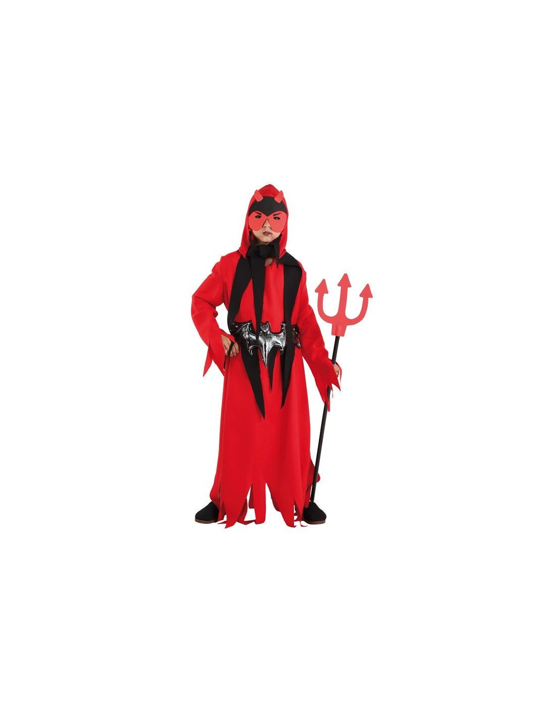 Conviértete en el representante del infierno con este disfraz de demonio para niño. Perfecto para Halloween y fiestas temáticas. Incluye antifaz-capucha,vestido y cinturón-murciélago.