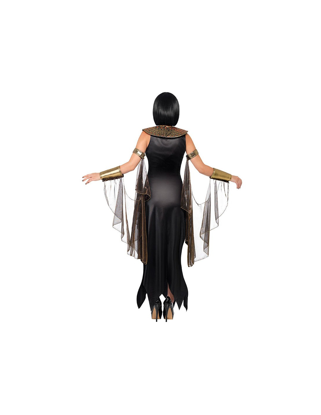 Disfraz de diosa egipcia para mujer que incluye vestido, cuello, mangas drapeadas y máscara.