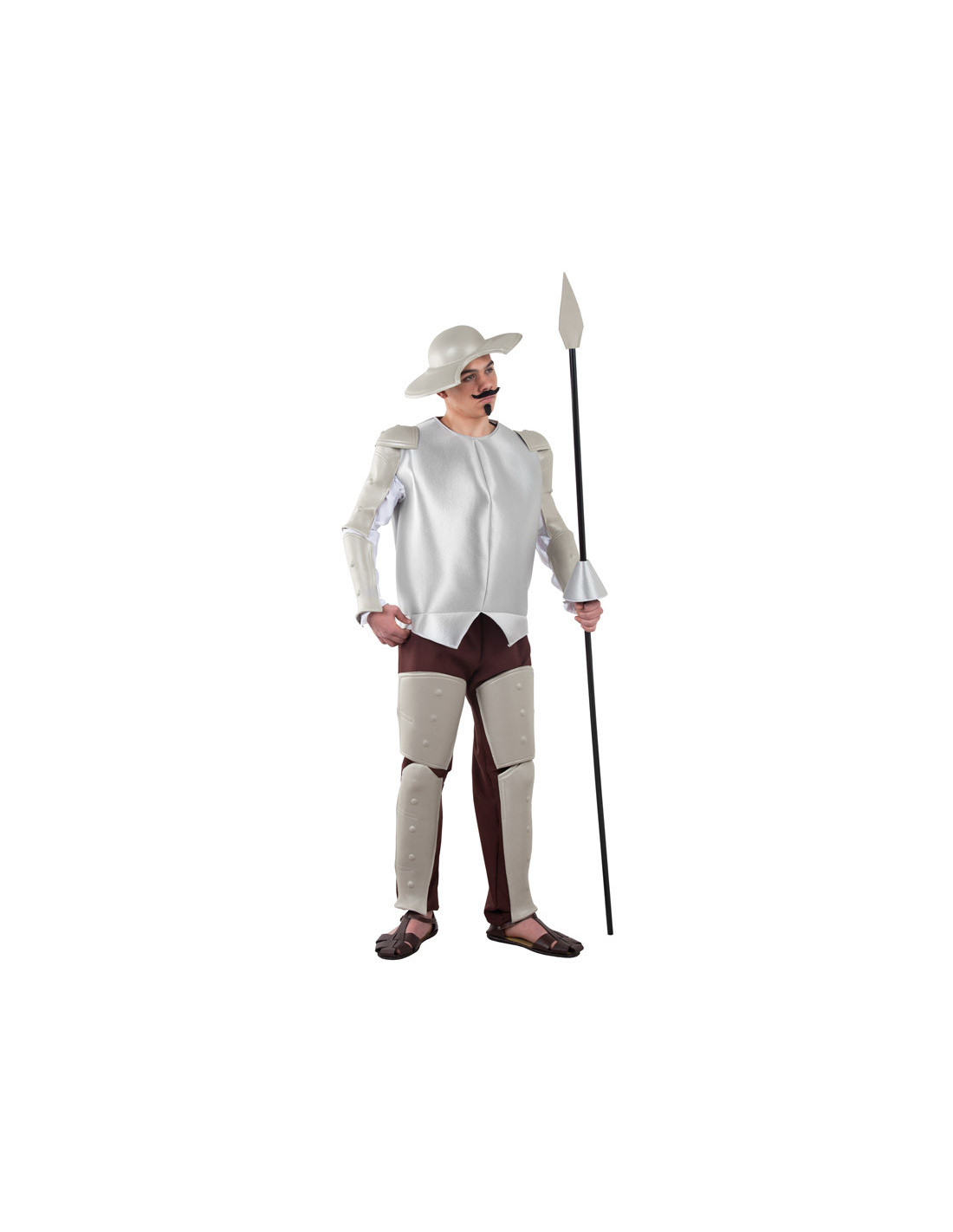 Disfraz de Don Quijote adulto para cabalgues a lomos de Rocinante acompañado de Sancho Panza luchando contra los molinos de viento. Recorrerás las estepas de la Mancha gracias a tu disfraz de Don Quijote para adulto, compuesto por un sombrero tipo bacía fabricado de goma eva, una armadura con hombreras y brazón también de eva, y pantalón con parte de las espinilleras y rodilleras del mismo material. No incluye lanza.