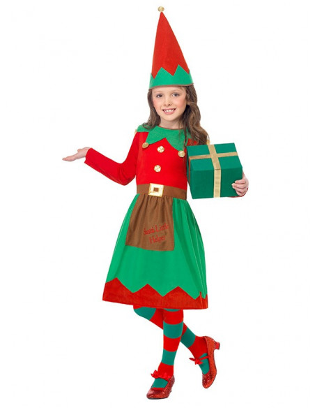 Disfraz de Elfa infantil que incluye vestido y gorro.