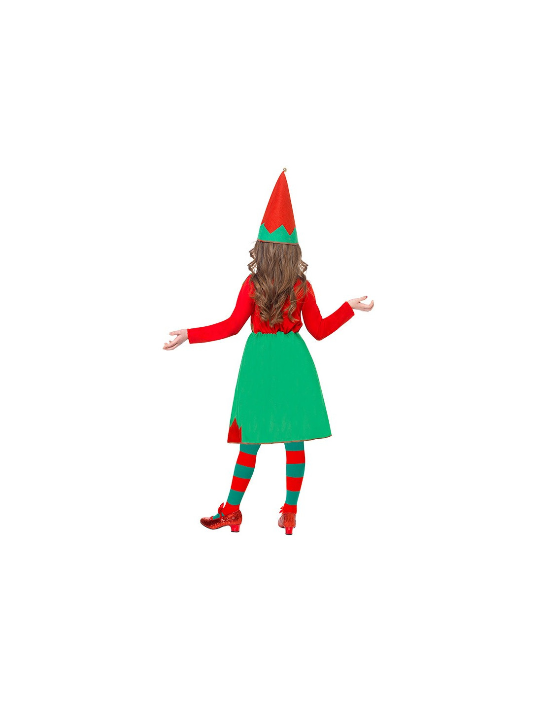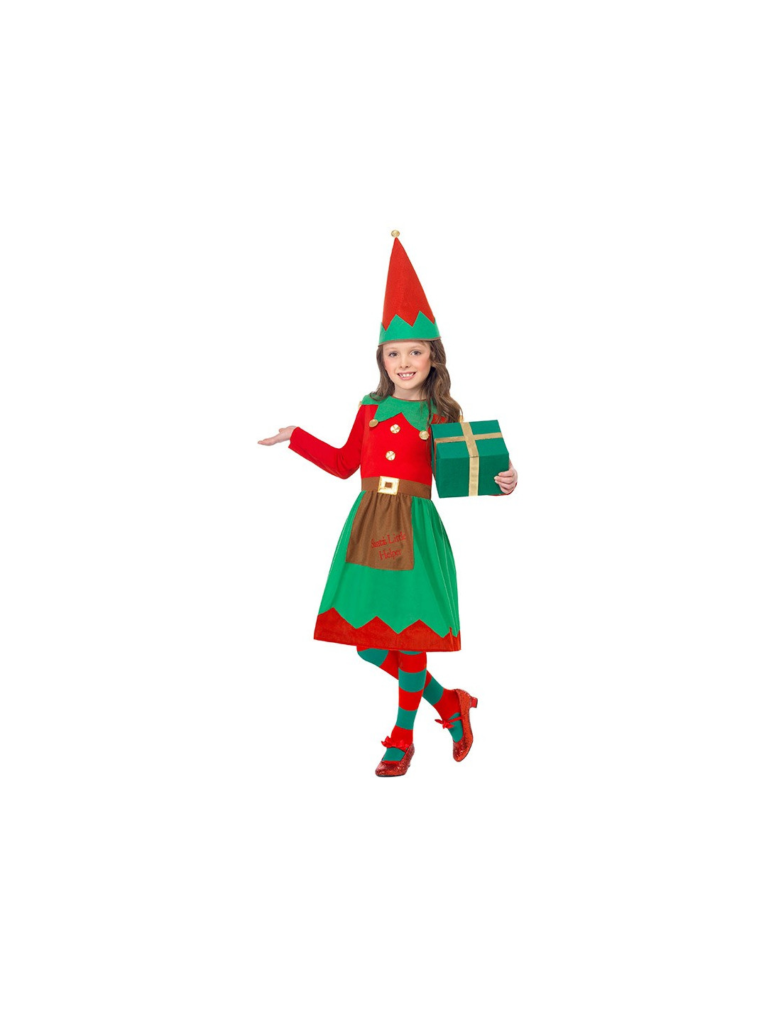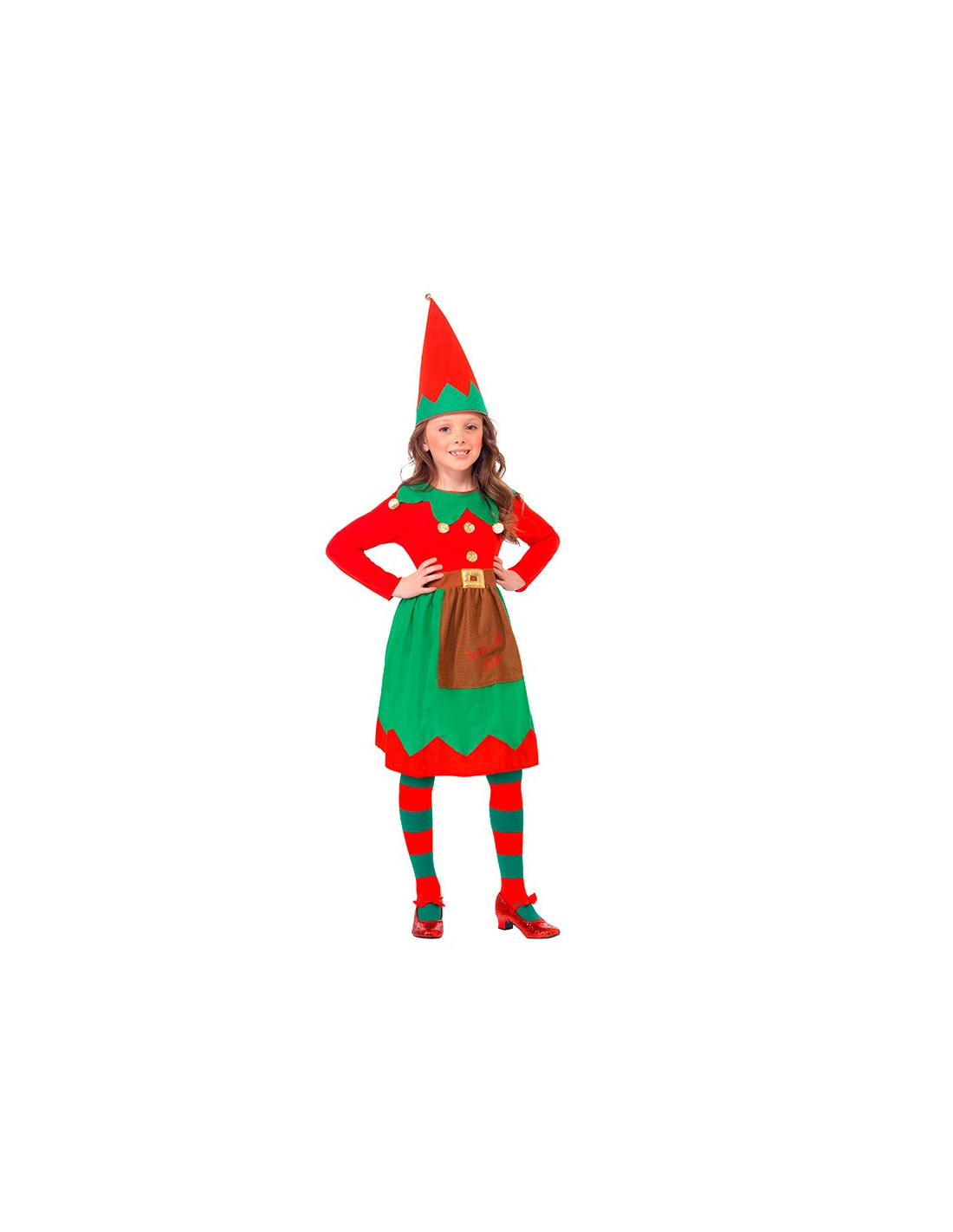 El disfraz de Elfa infantil contiene vestido al que no le falta detalles como botones, cuello, cinturón y mandil, y gorro.