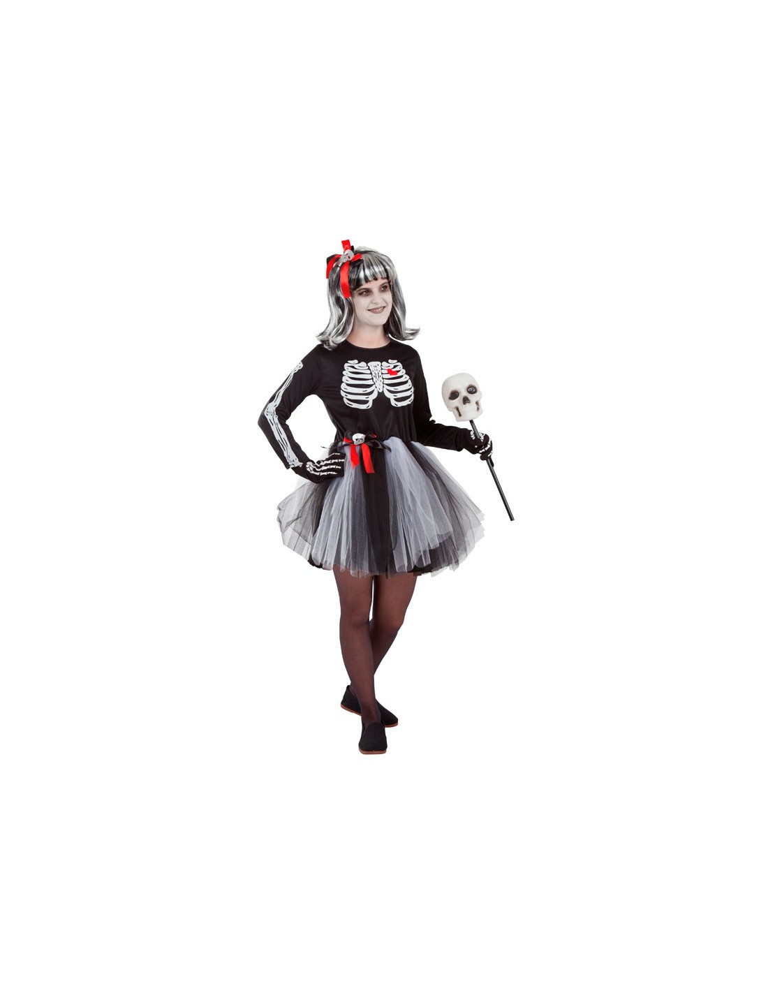 Disfraz de esqueleto tutú mujer para Halloween. Este vestido con falda de tul le da un toque coqueto y original a tu disfraz de Halloween. Sácale partido en Carnaval, cenas de Halloween o fiestas temáticas.