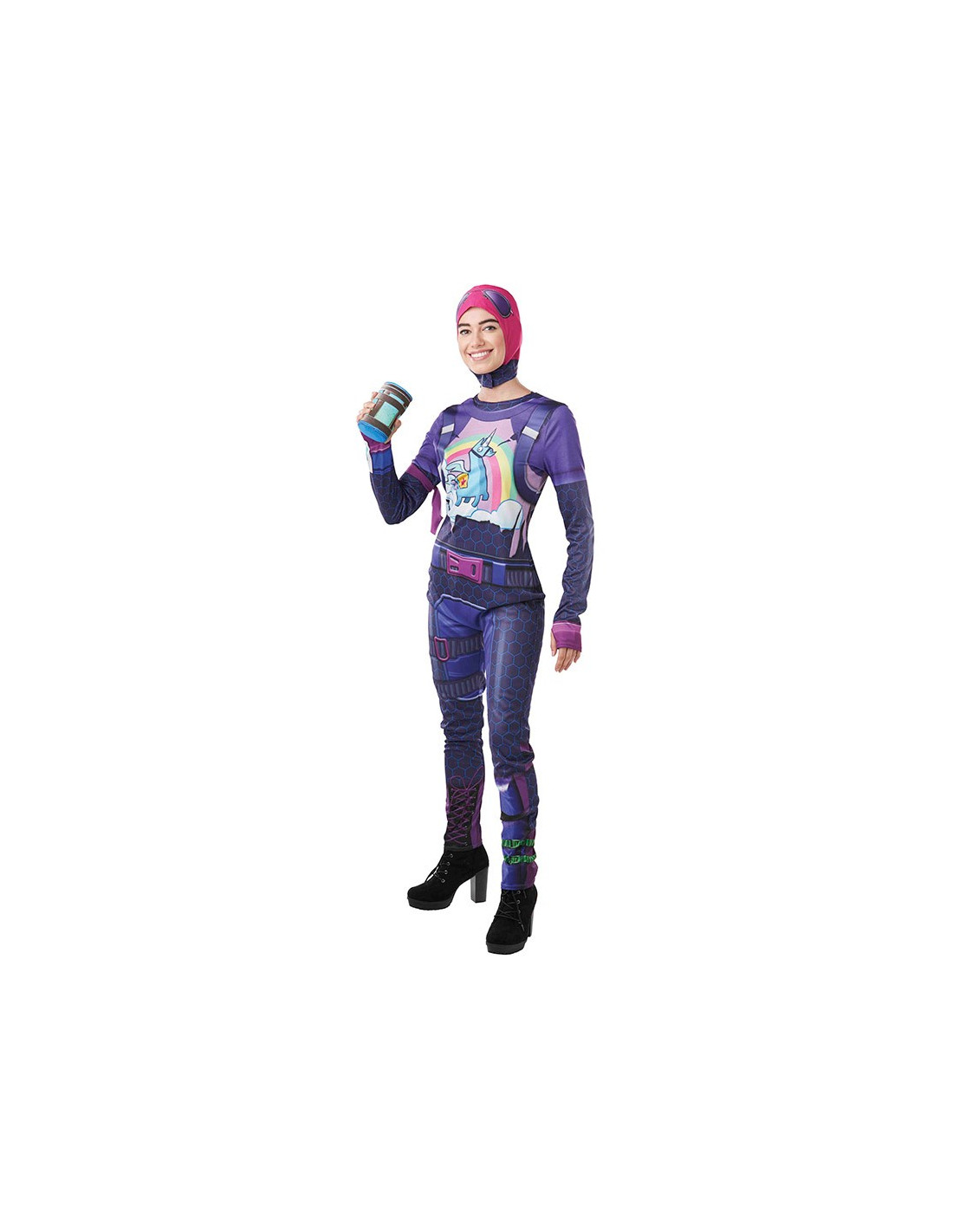 Disfraz de Fortnite Brite Bomber mujer que incluye mono impreso, capucha y accesorio de bebida legendaria Chug Jug.