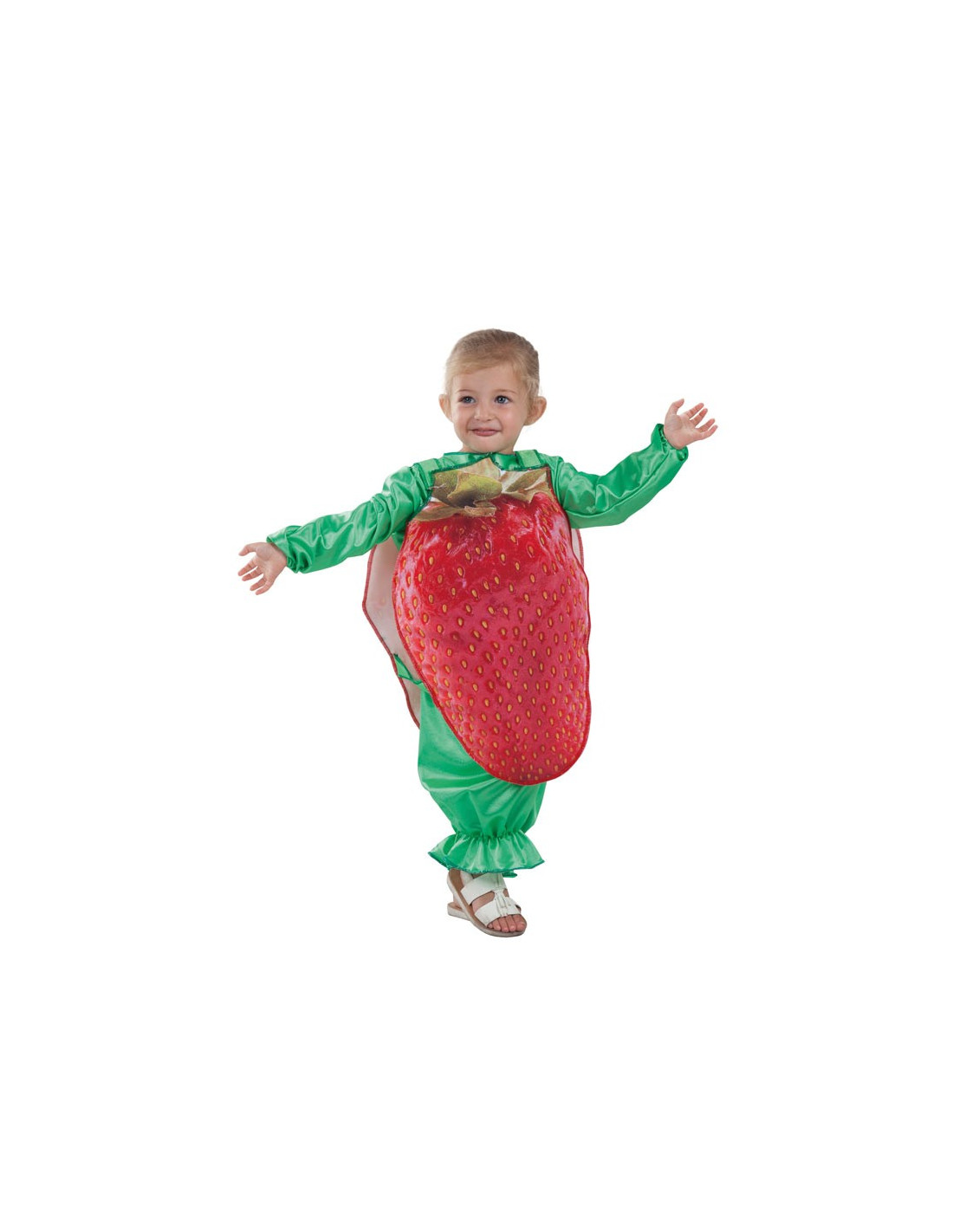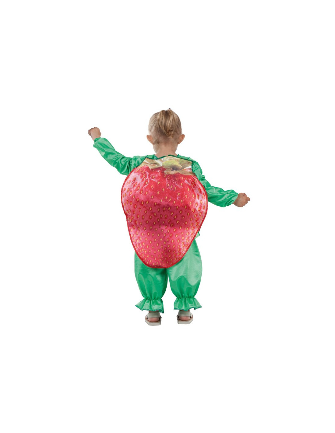 Será la más dulce de la fiesta con este disfraz de fresa para bebé. Compuesto por un pantalón y camiseta verde simulando ser la rama del árbol, y una fresa que se sujeta con un par de tiras sobre los hombros, 100% realista y estampadas mediante sublimación sobre una tela foamizada, este traje causará auténtica sensación.
