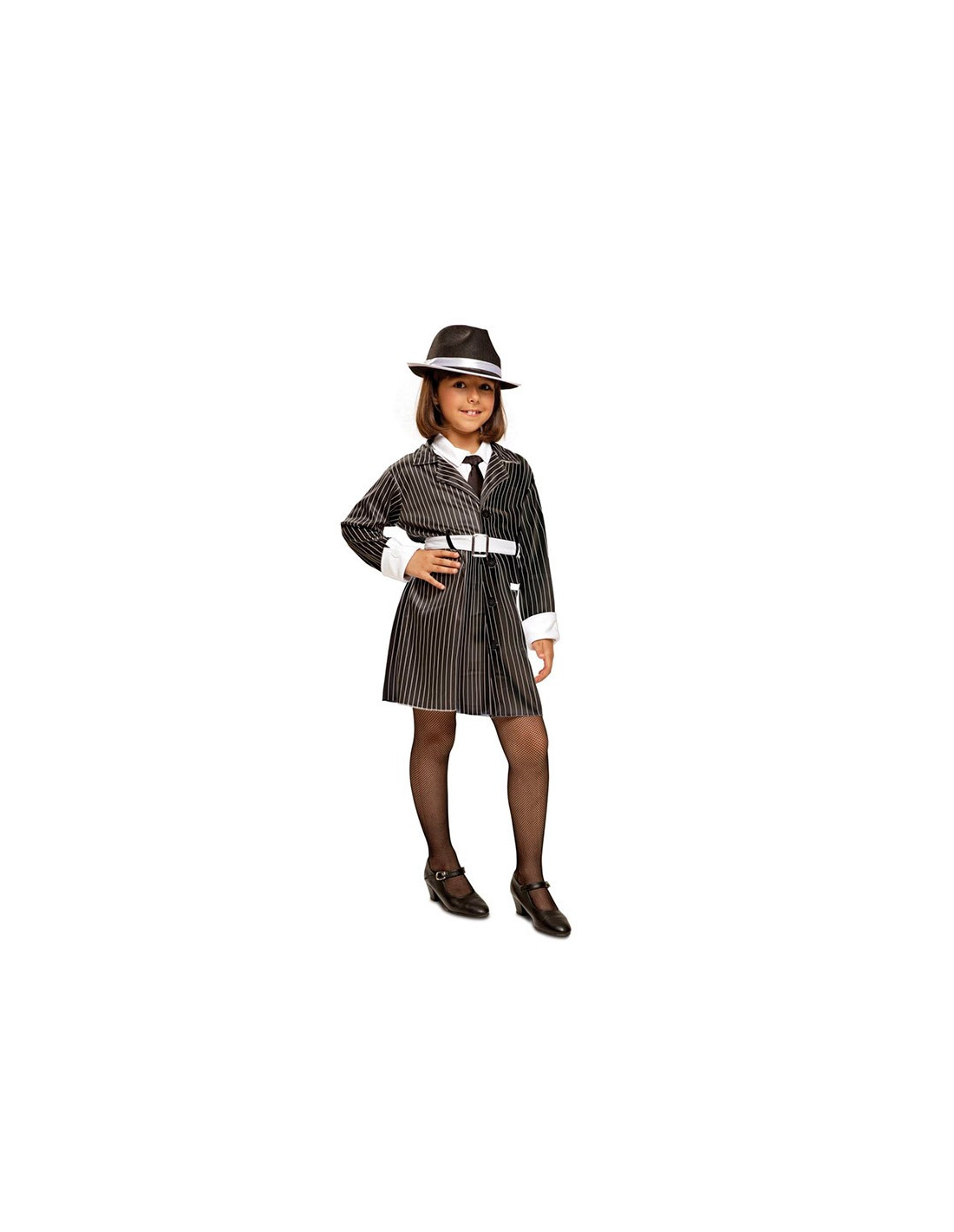 La más coqueta de toda la mafia será tu pequeña con este elegante disfraz de gángster mafiosa para niña. Perfecto para disfrazarse en grupo en festivales escolares o en familia para Carnaval y fiestas de disfraces.