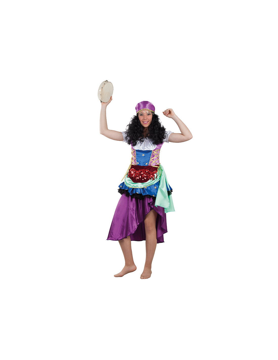 Disfraz de gitana mujer que incluye vestido y pañuelo para la cabeza.
