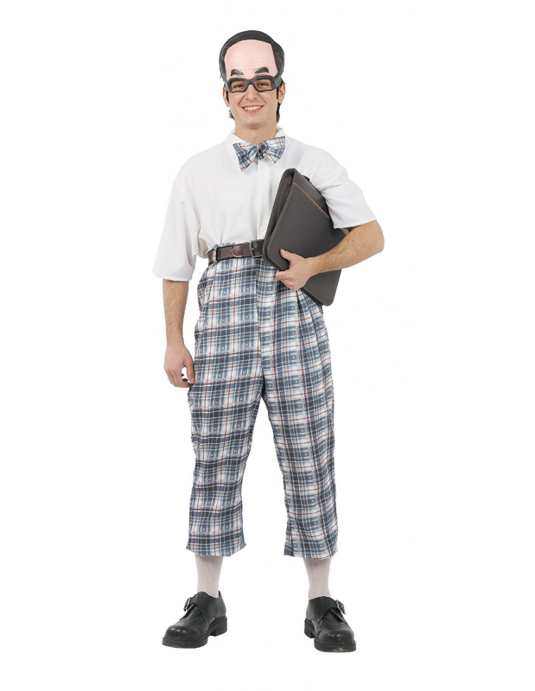 Si quereis vengaros del malote de la clase en su despedida de soltero, este es el disfraz que necesitas. Ponerle las gafas de culo de baso, subirle los pantalones hasta el sobaco y sacarlo a pasear para que pase un poco de vergüenza.