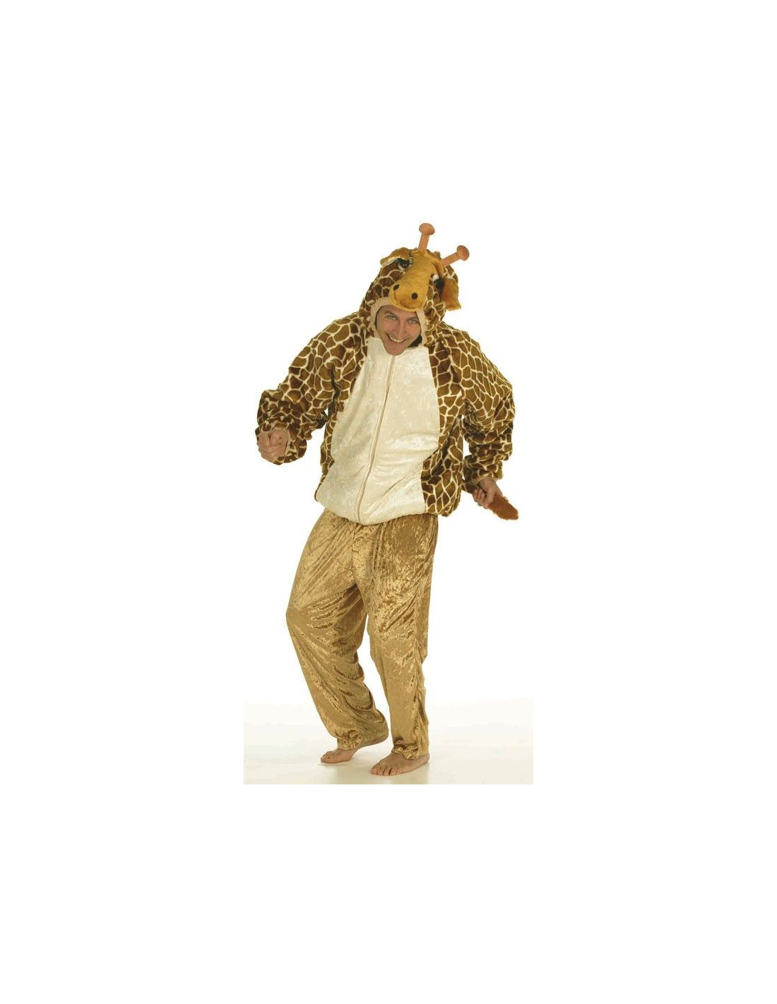 Disfraz de Jirafa unisex adulto, que incluye mono con cabeza fabricado en velux en tonos camel y con el estampado de jirafa, la cabeza tiene los detalles del ocico, ojos, orejas y cuernos.