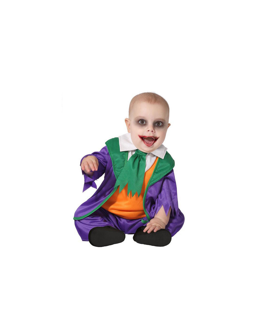 Original disfraz de Joker para que los pequeños de la casa vivan su primer Halloween o fiesta de disfraces. Tu peque se convertirá en el villano más simpático de la fiesta.