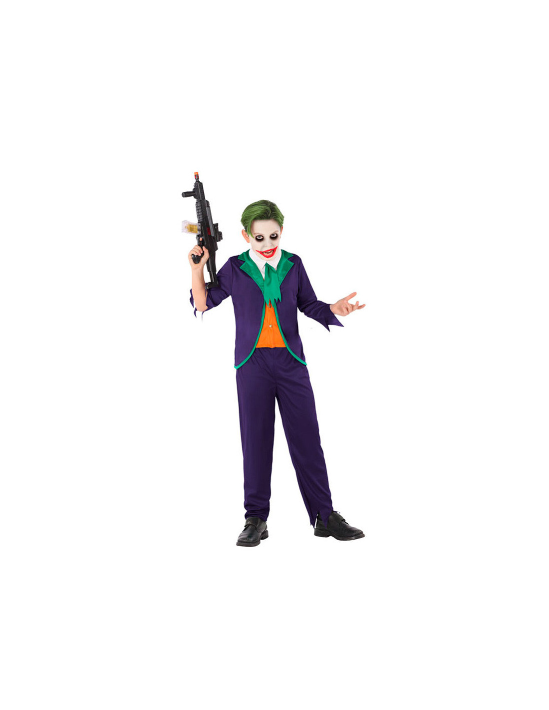 Disfraz de Joker para niño que incluye chaqueta con camiseta, corbata y pantalón.