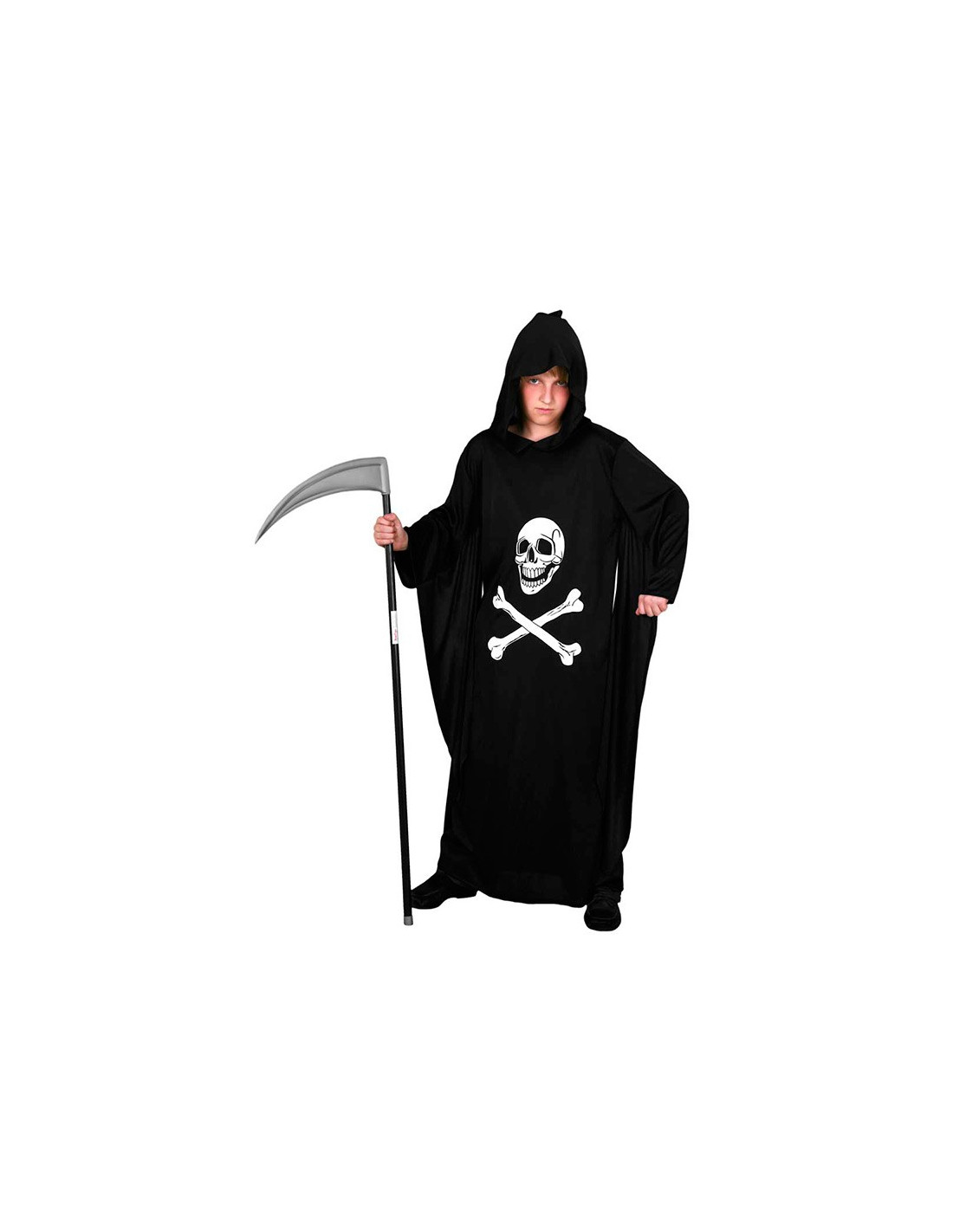 Disfraz de la muerte infantil que incluye túnica negra con capa-capucha.