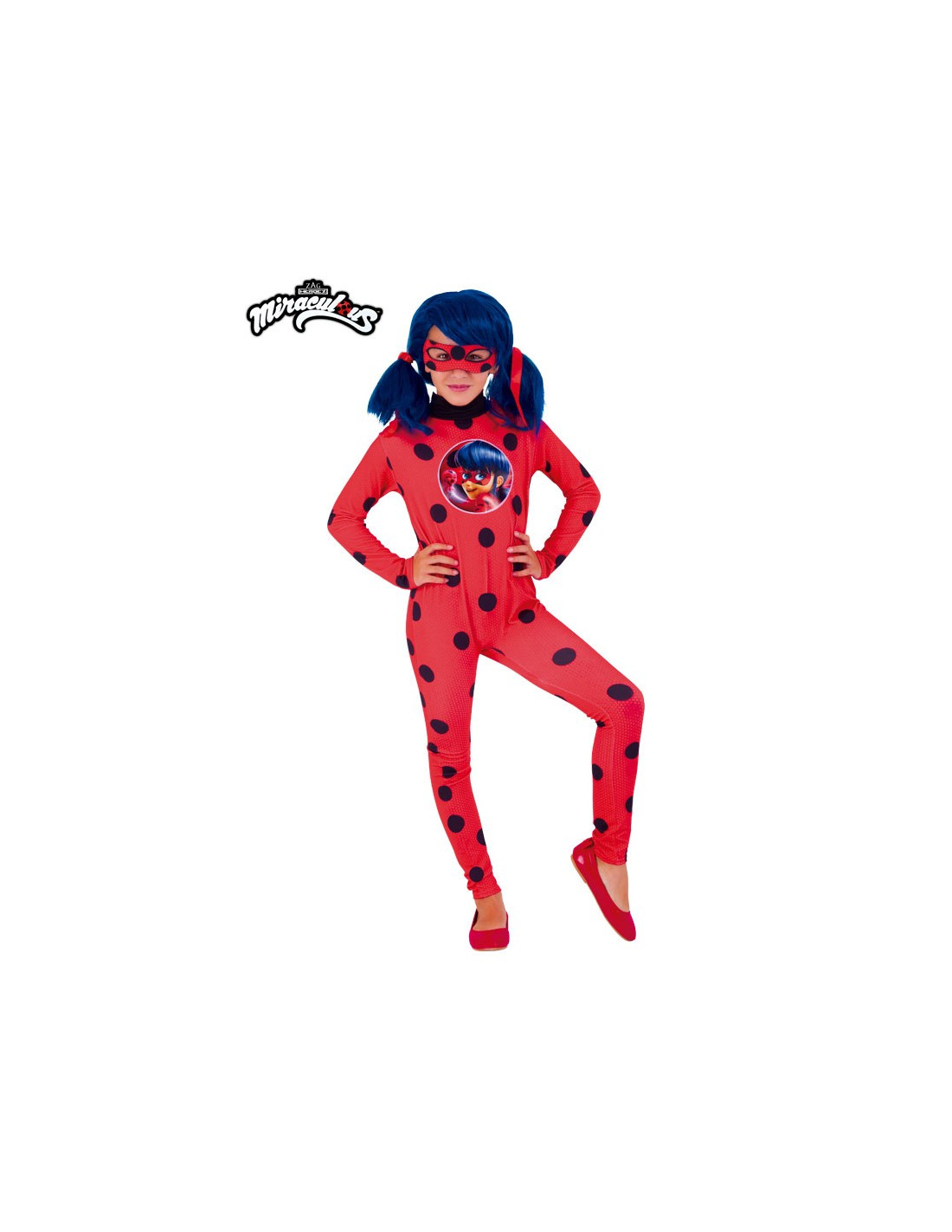 El disfraz de Ladybug para niña contiene un mono de cuerpo entero con un parche en el pecho del famoso personaje animado y un antifaz a juego. No incluye peluca peor puedes adquirila a parte.