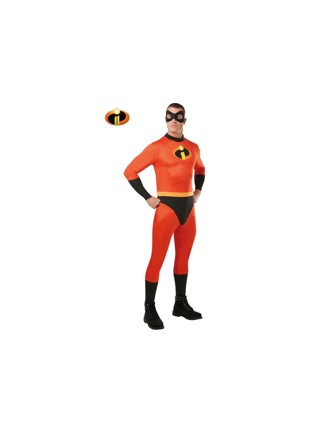 Este disfraz de Los Increíbles para hombre contiene un mono de cuerpo entero y antifaz.