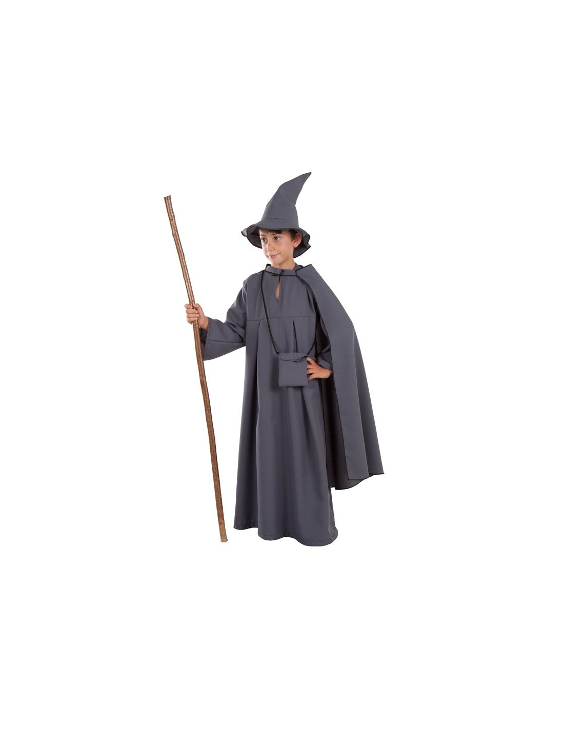 Disfraz de Mago Gris para niño que incluye sombrero, zurrón y túnica.