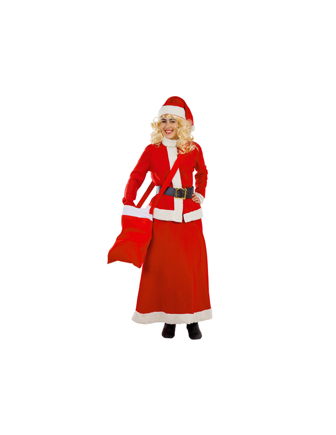 Disfraz de Mamá Noel largo mujer que incluye gorro, chaqueta, cinturón y falda.