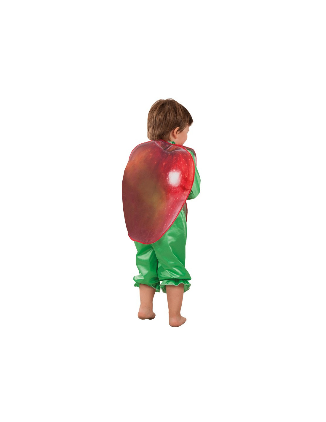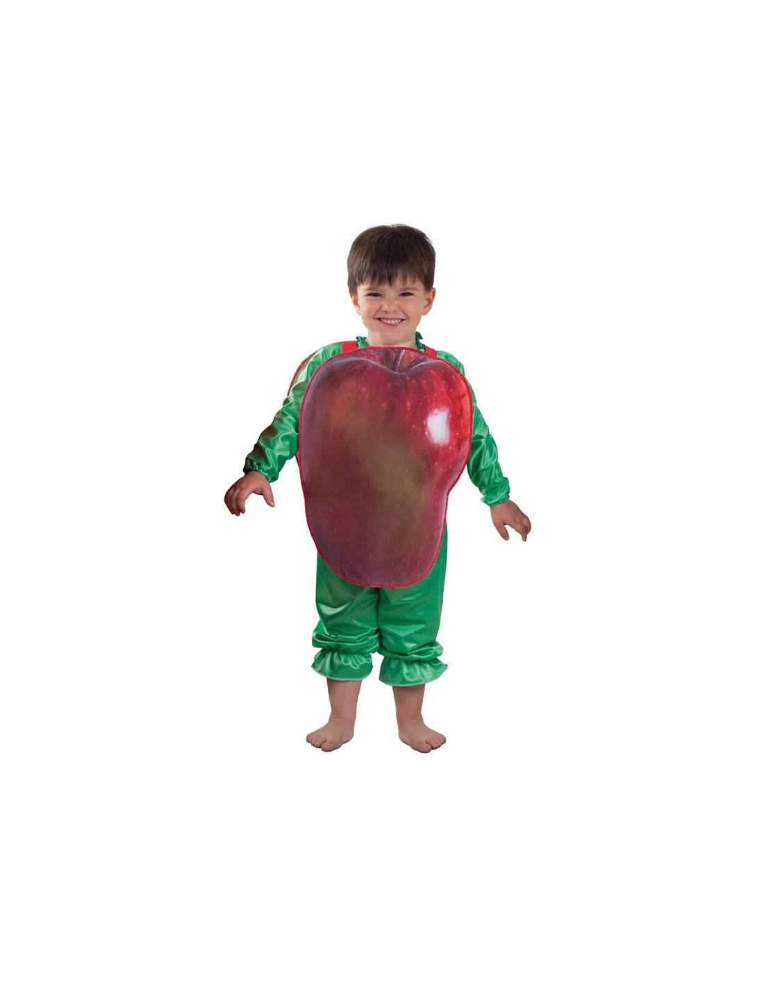 Convierte a tu pequeño en una fruta del bosque con este original disfraz de manzana para bebé. Compuesto por pantalón y camisa en color verde, y una manzana totalmente realista fabricada en tela de strecht con esponja para sujetar sobre los hombros.