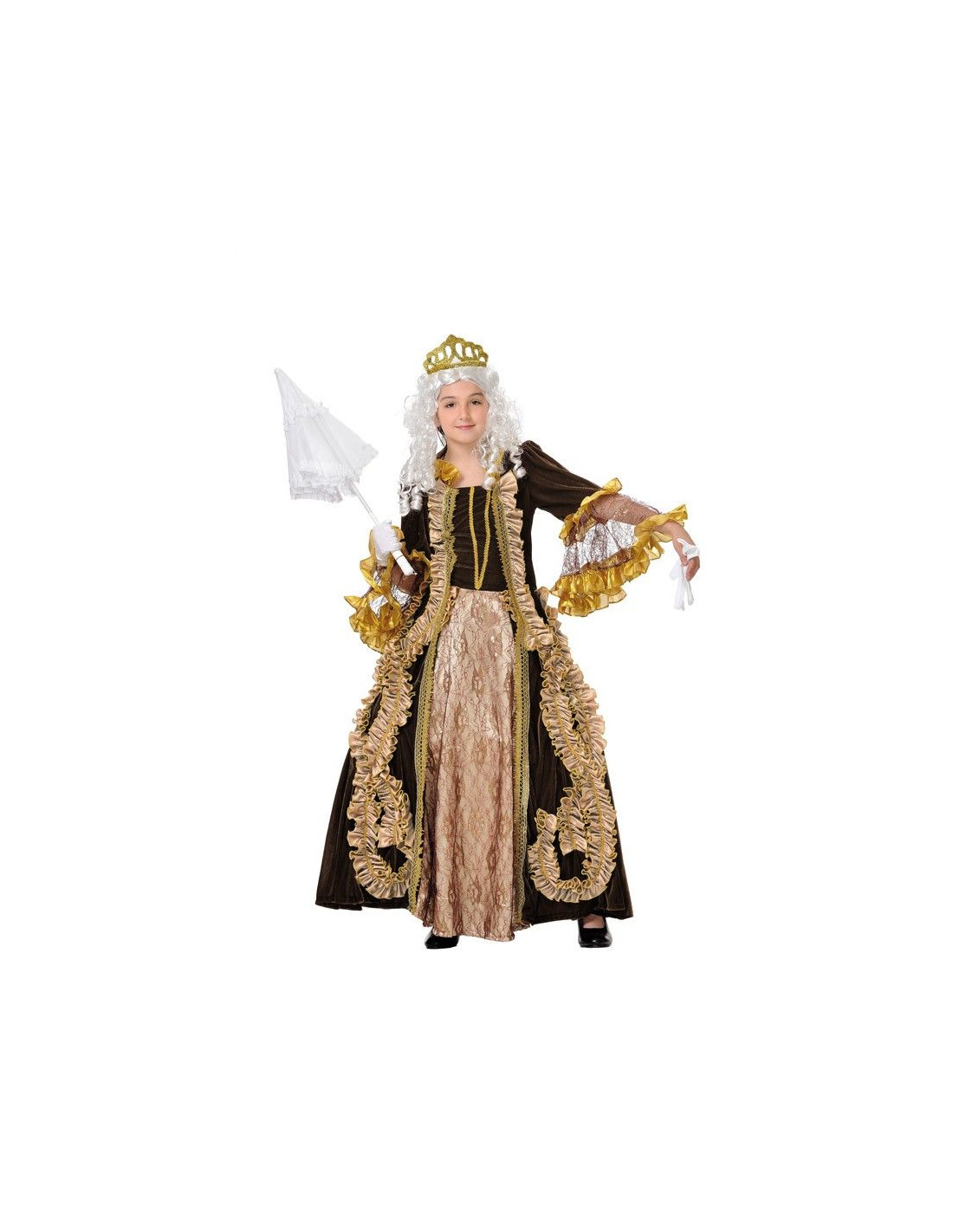 Transpórtate a otra época con este elegante disfraz de marquesa para niña. Perfecto para fiestas temáticas y representaciones teatrales. Incluye vestido.