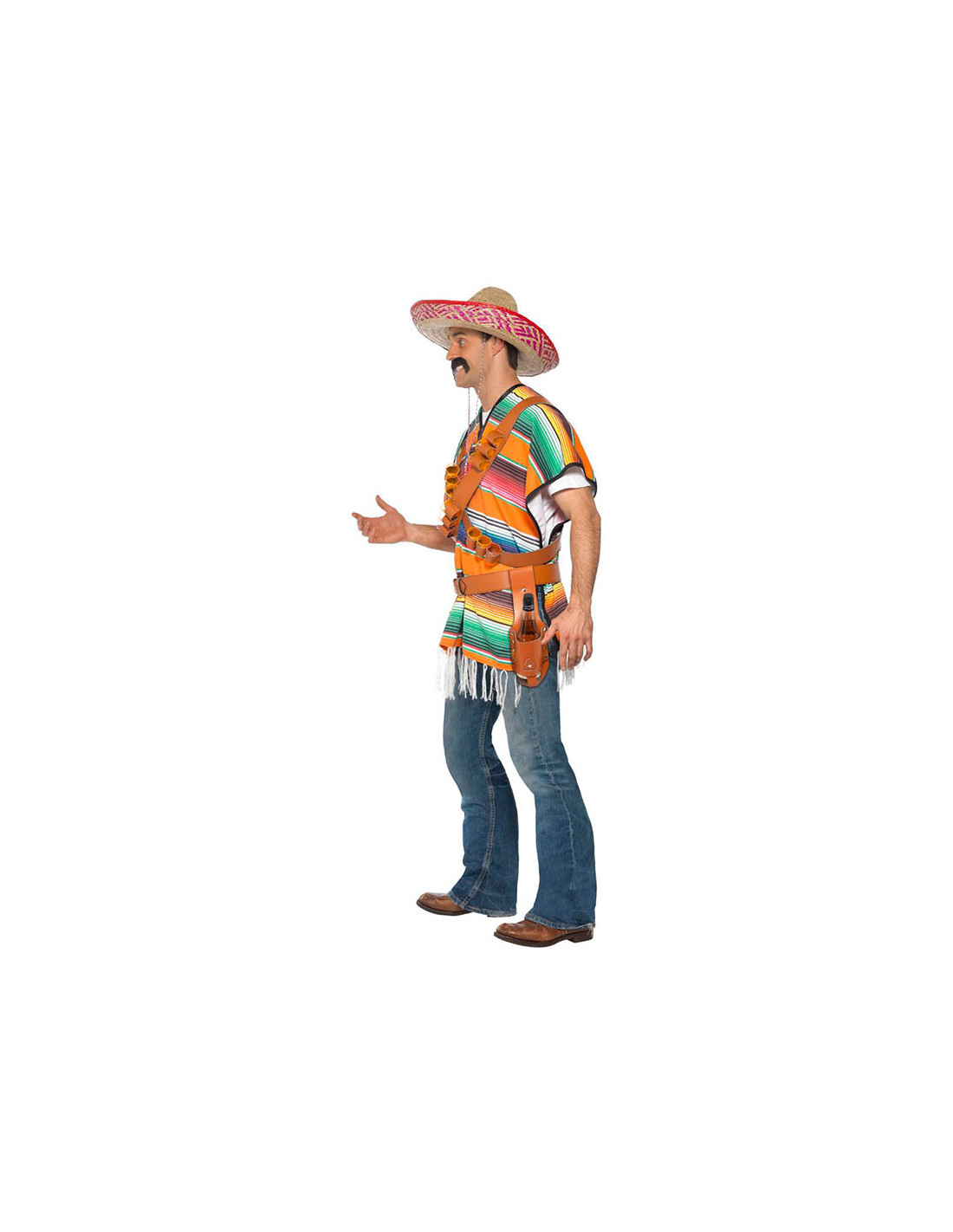Disfraz de mexicano tequila hombre que incluye poncho, cinturón y bandolera.