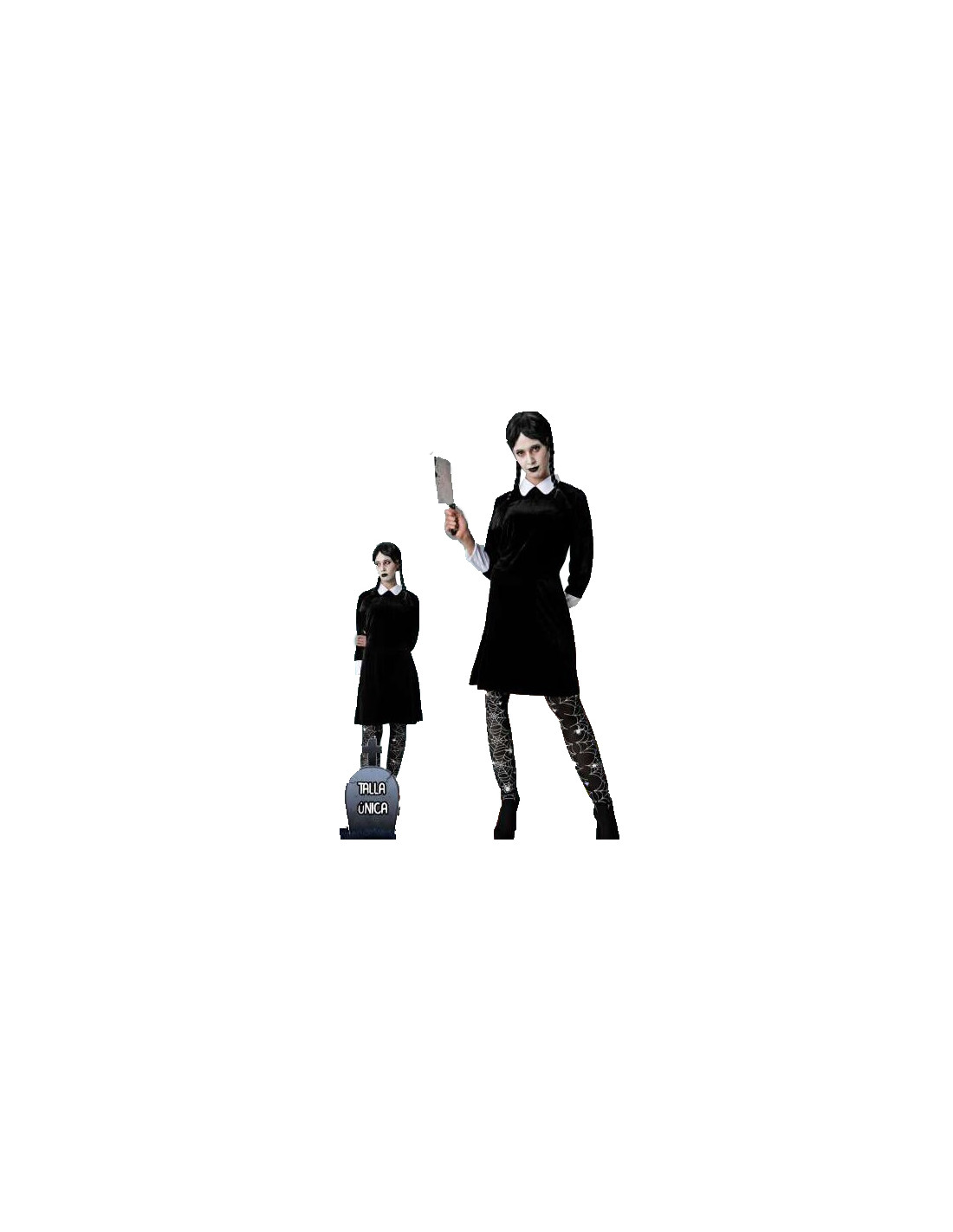 Disfraz de miércoles mujer para Halloween o Carnaval. Este disfraz es un básico en cualquier fiesta de terror. Ideal para disfrazarse en grupo y reuniros la familia Addams al completo.