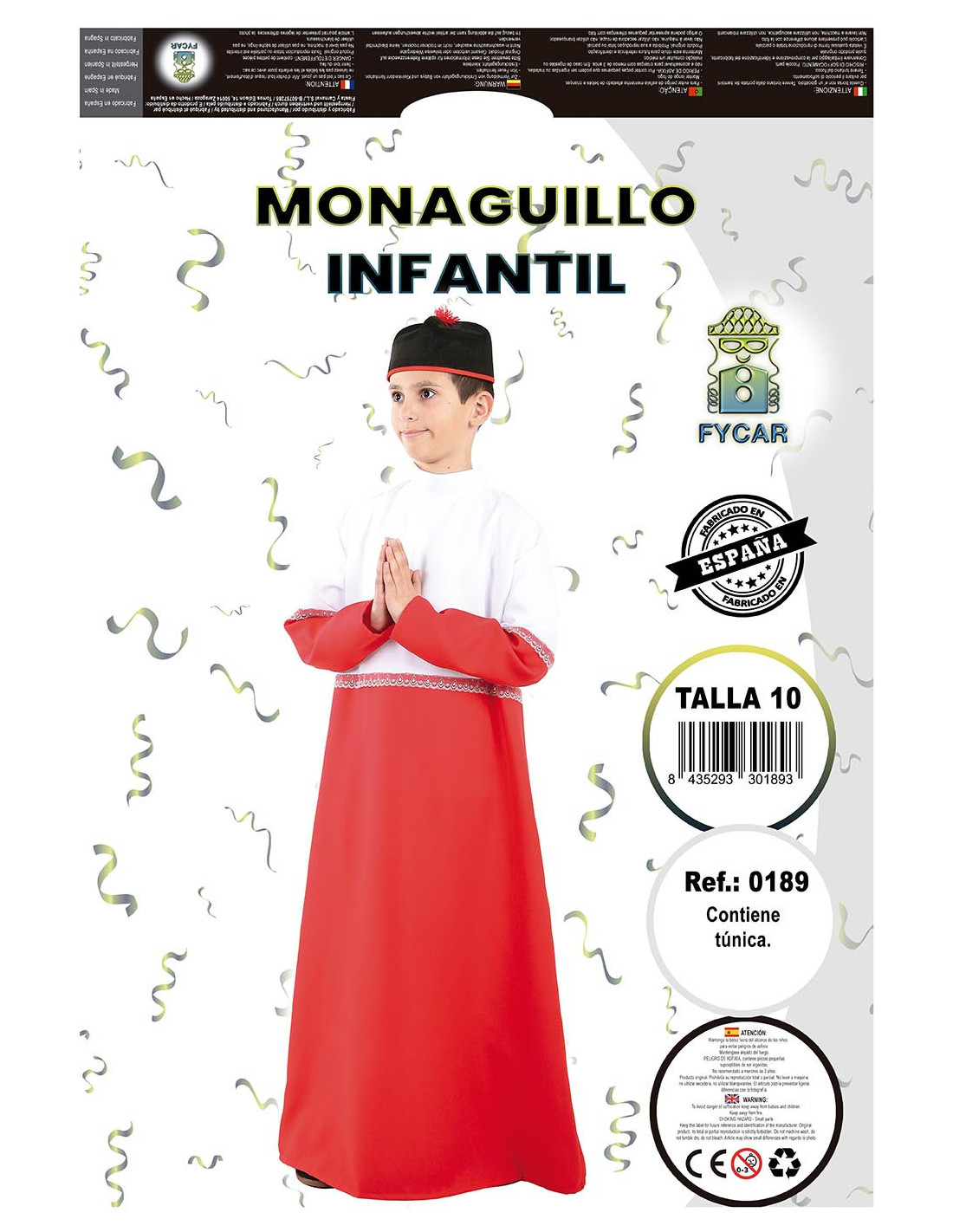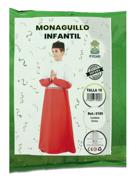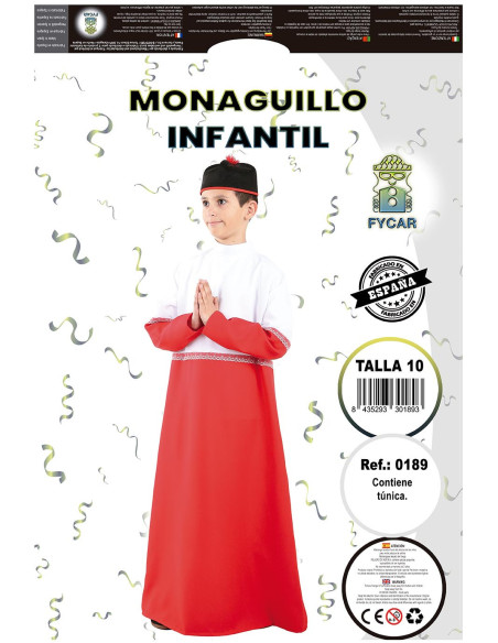 Disfraz de monaguillo para niño ideal para tu fiesta de Carnaval, Halloween u obras infantiles de fin de curso. Incluye un disfraz de monaguillo para niño, compuesto por una túnica blanca y roja. No incluye gorro. Tu pequeño recitará los salmos como un auténtico ayudante de cura.