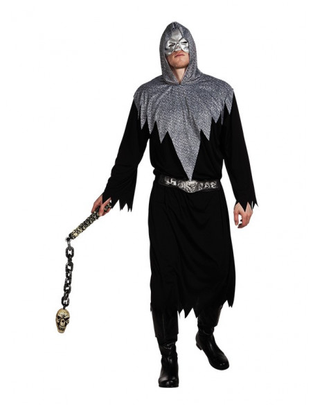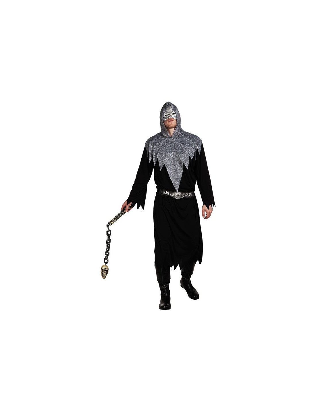 Disfraz de muerte calavera hombre que incluye capucha, túnica, antifaz y cinturón.