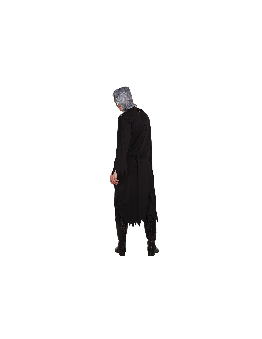 El disfraz de muerte calavera hombre está compuesto por una túnica negra de manga larga acabada en picos, capucha, cinturón y antifaz.