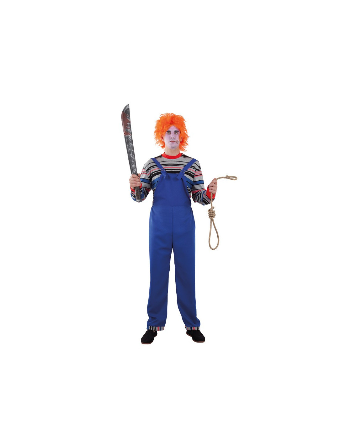 Disfraz de muñeco diabólico para hombre que incluye peto y camiseta.
