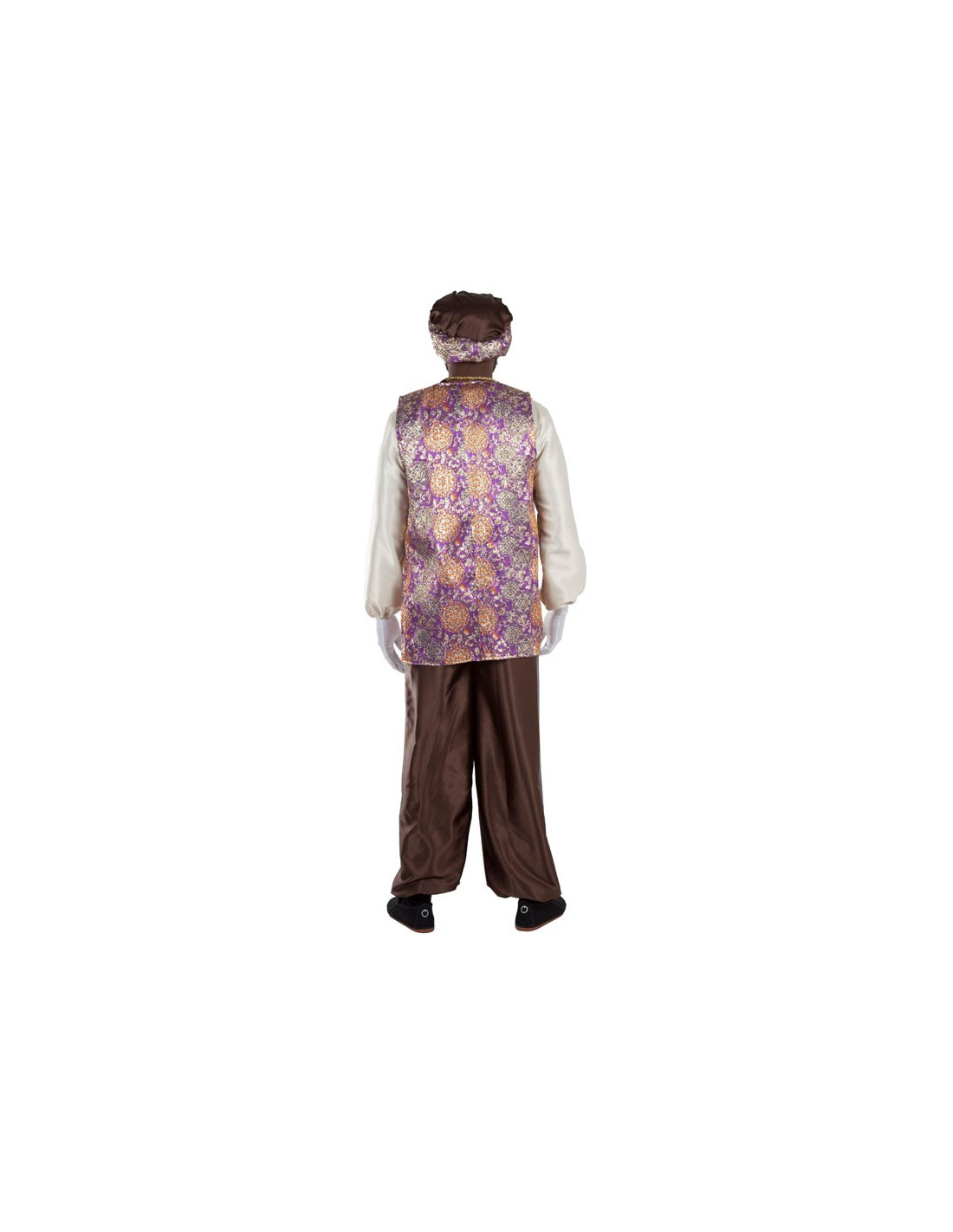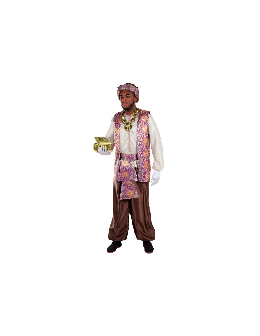 Disfraz de Paje Baltasar para hombre que incluye turbante, chaleco, camisa, cinturón y pantalón.