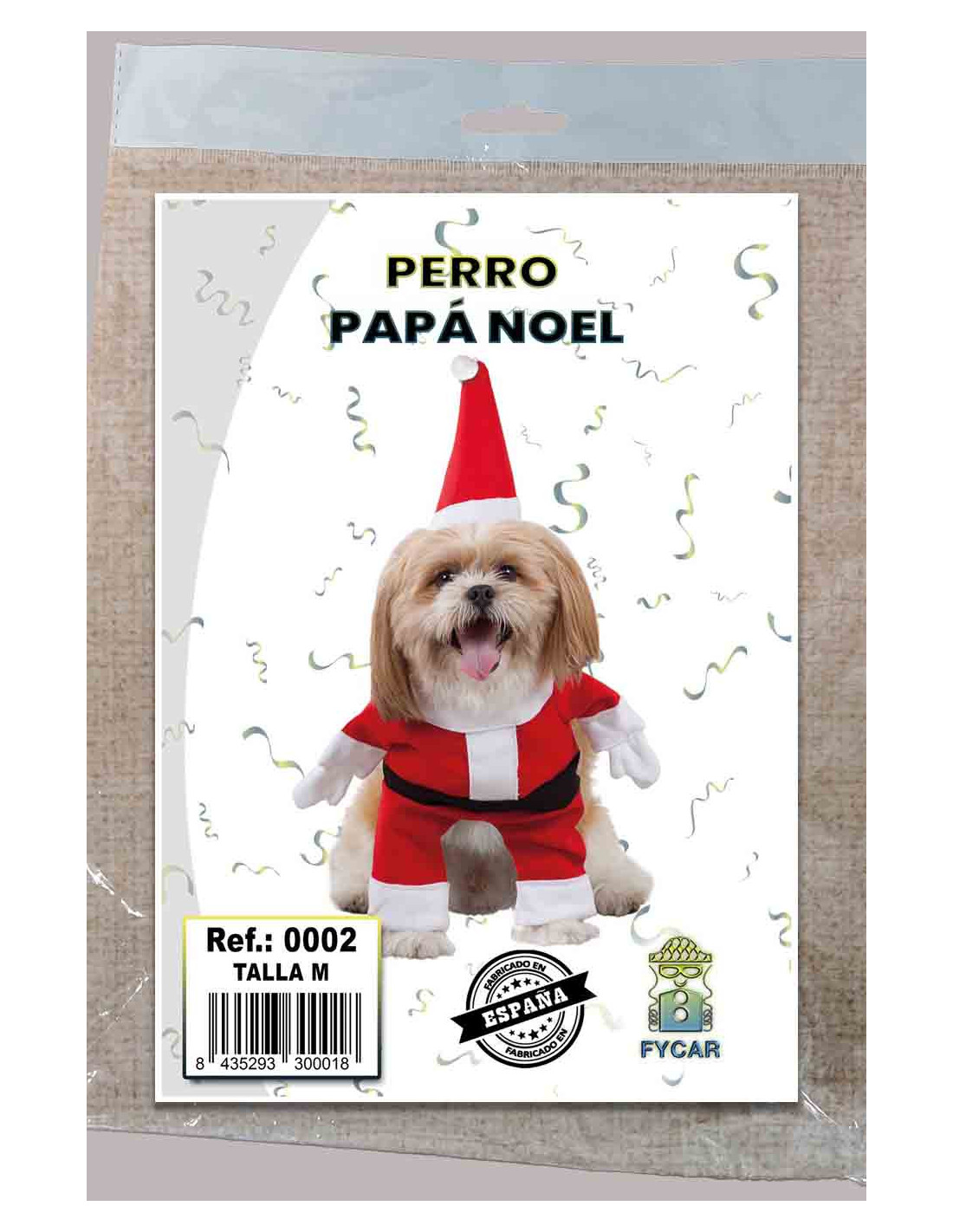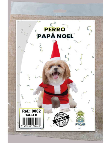 Disfraz de Papá Noel para perro compuesto de un gorro de Navidad y traje de Santa para la parte delantera.