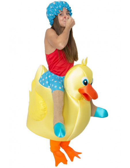 Disfraz de patito de goma que incluye traje completo de pato con gorro.