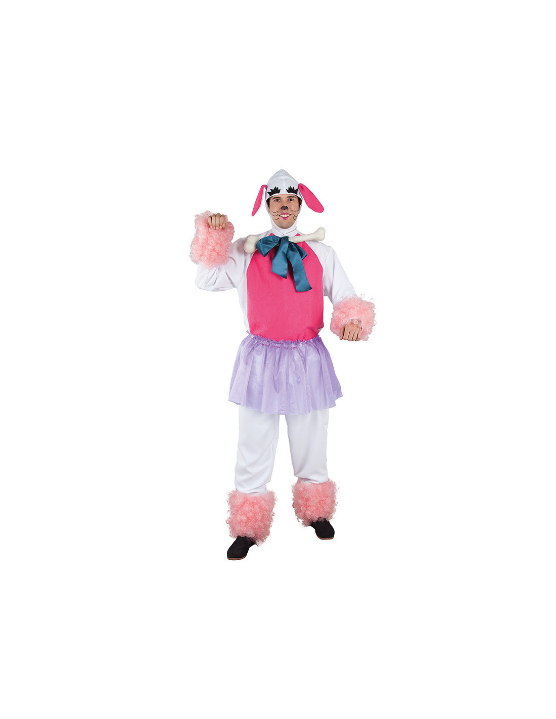 Disfraz de perrita Lola adulto que incluye capucha con cabeza, hueso, mono y tutú.
