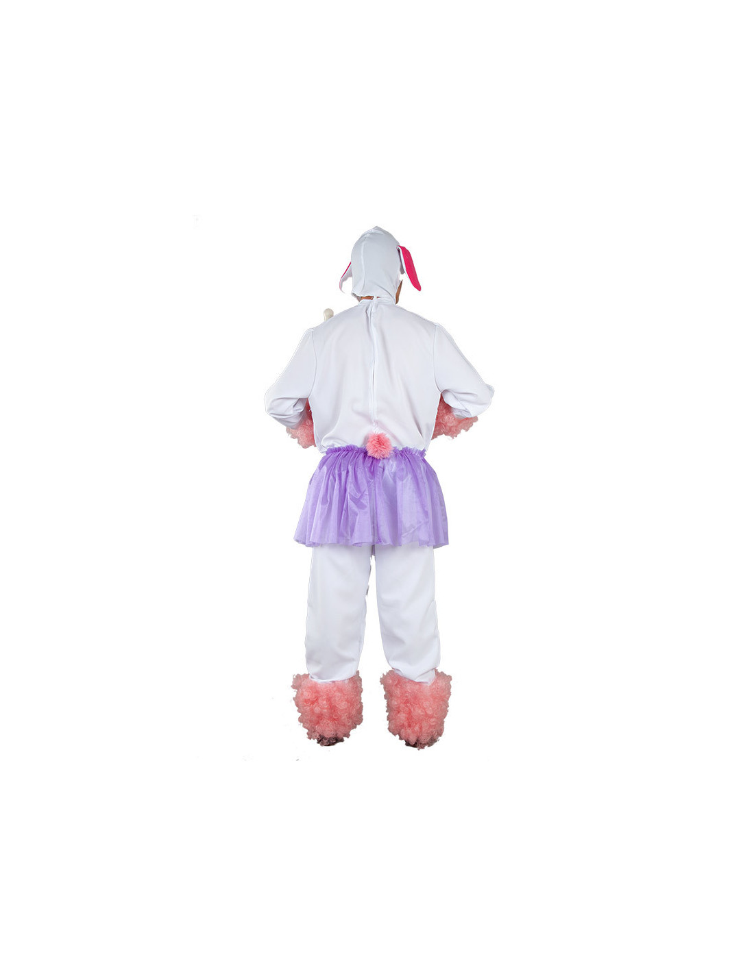 El disfraz de perrita Lola adulto contiene una capucha con cabeza, hueso para el cuello, mono y tutú morado.