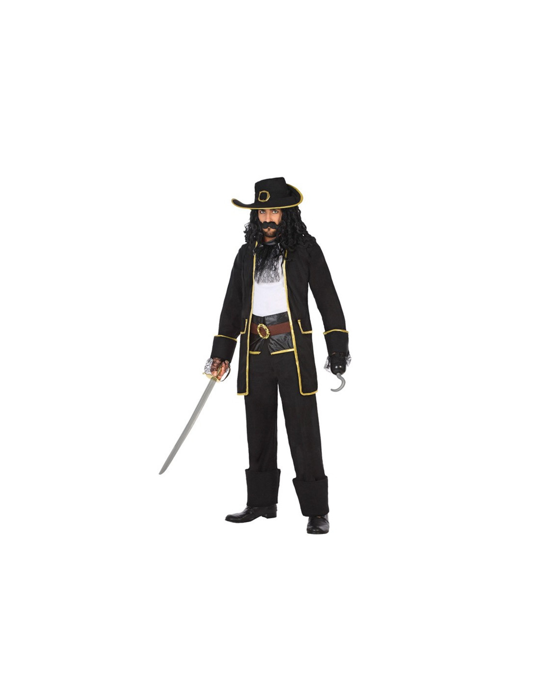 Disfraz de pirata barba negra adulto que incluye gorro, chaqueta, pechero, camisa, cinturón y pantalón.