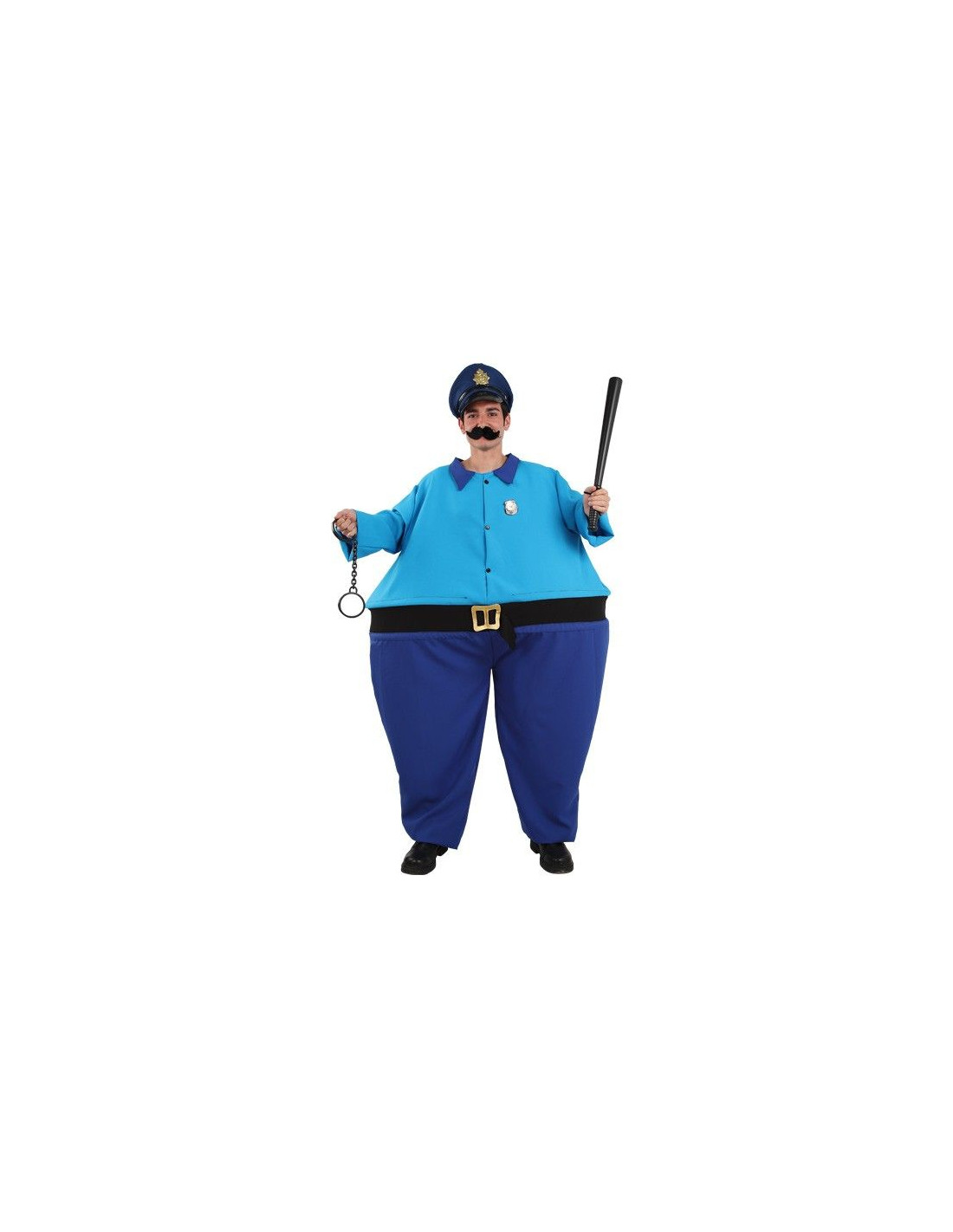 Disfraz de policia que incluye mono en tonos azules, fabricado en strech y decorado con un cinturon.